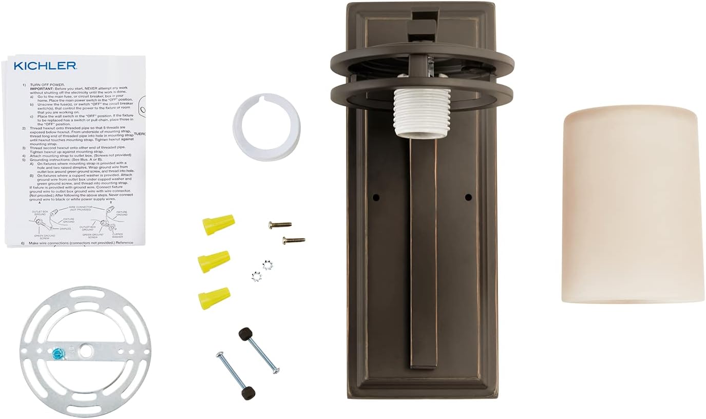 - What's in the Box: (1) Mounting Strap, Strap Mounting Screws, Mounting Screws, Lockwasher, Lock up Knobs, Wire Nuts and (1) Glass Shade. Bulb(s) not included.
