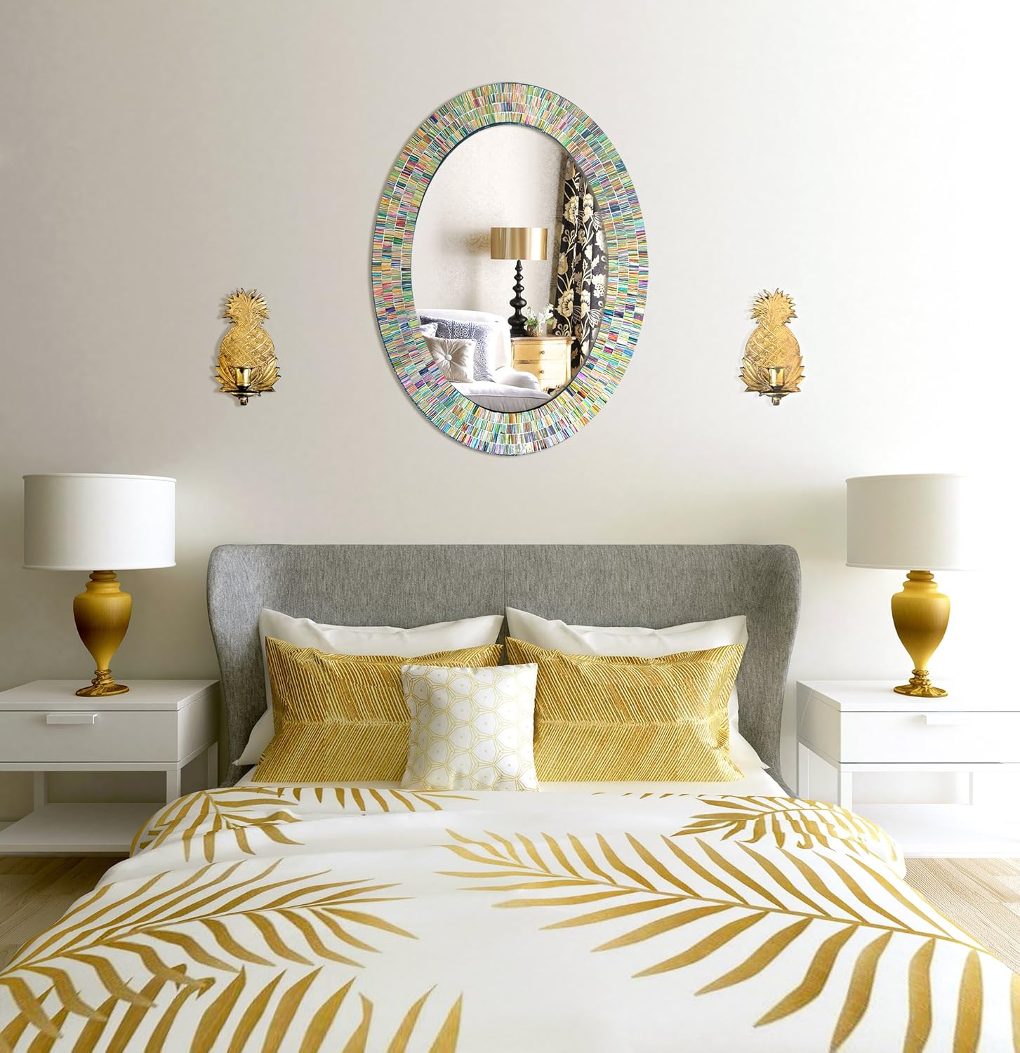 Bohemian Rainbow Wall Mirror -Glass Mosaic Decorative Wall Mirror, Multi Color Spectrum Wall Mountable, Oval Multi-Color Framed Mirror (32 in. x 24 in.)