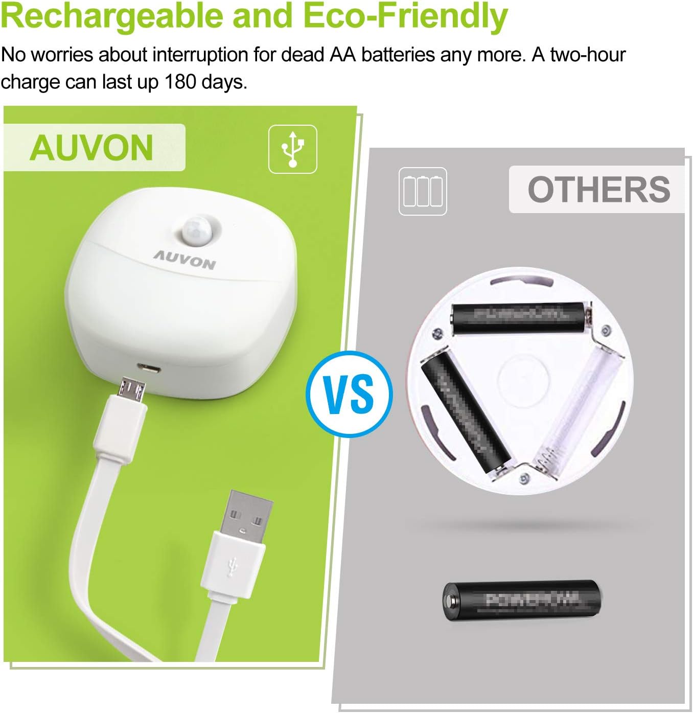 - What You Receive: 4* AUVON Rechargeable Night Lights, 1* USB Cable,1* User Manual and Lifetime Technicalm Support.