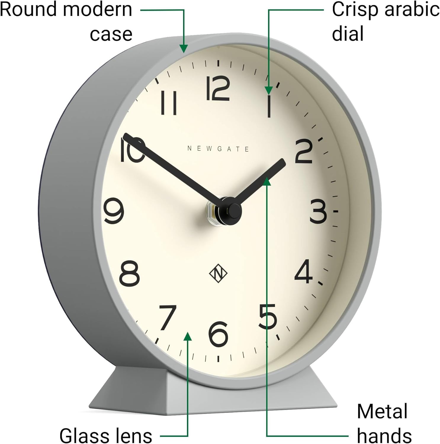 NEWGATE® M Mantel Echo Desk Clock | Modern Round Design | Posh Gray | Easy to Read Numbers | Contemporary Style for Desk, Table, Shelf or Bedside