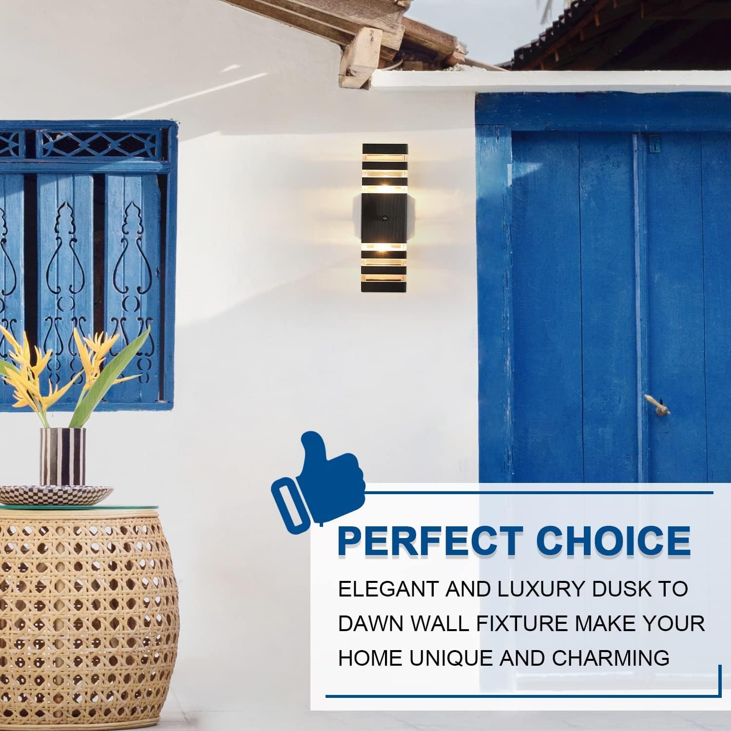 - 【DUSK-TO-DAWN ENABLED】 High-sensitivity photocell allows the wall mount to operate independently without any light switch – Powers On when the sun goes down and goes Off at sun rise.