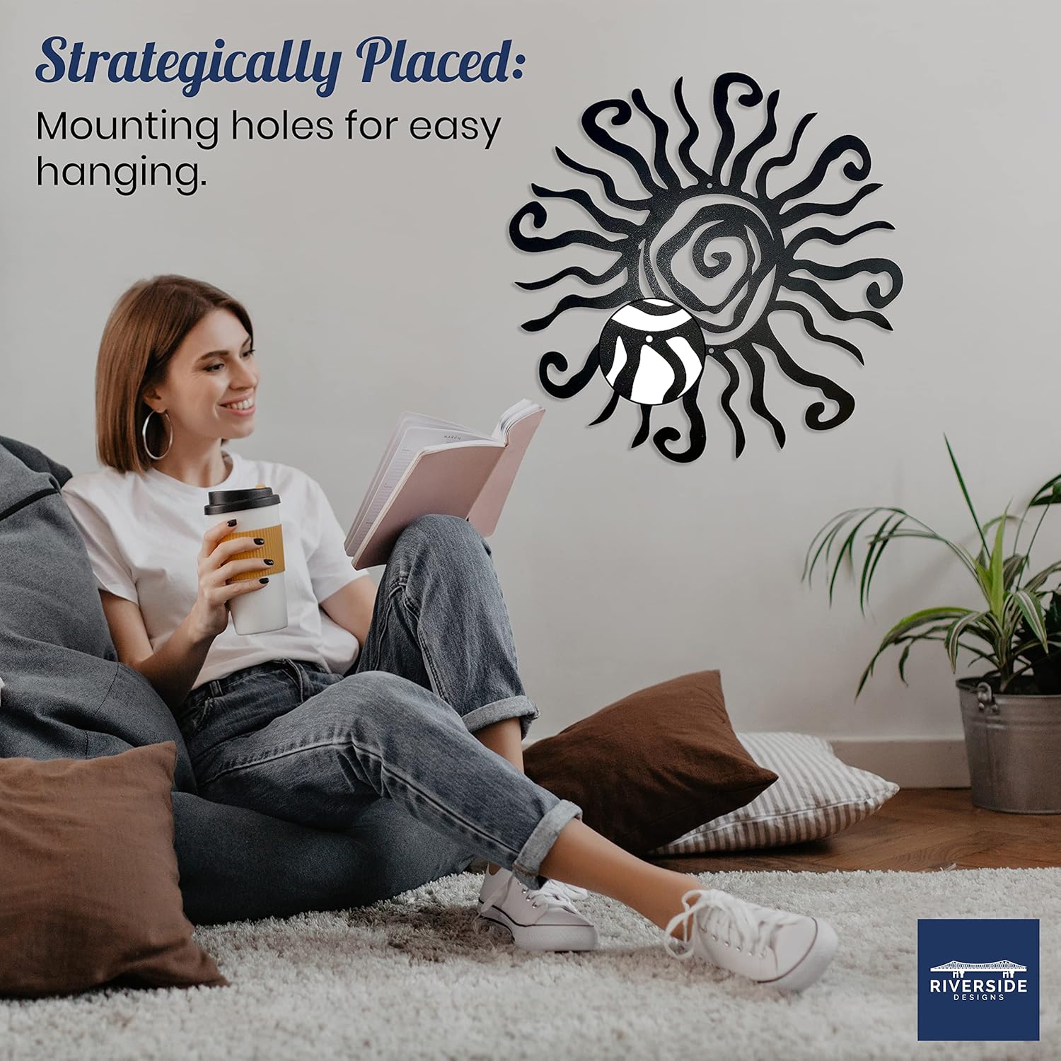 Riverside Designs Wacky Sun Metal Wall Art Indoor/Outdoor Decor - 30" Black Rust Proof Wall Sculpture - Made in USA - Ideal for Bedroom, Garden, Home, Patio and Farmhouse