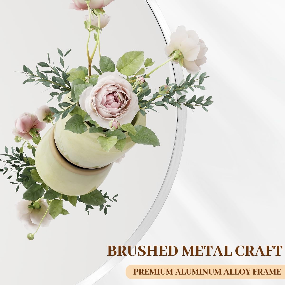 - Modern Brushed Frame Design: 30-inch white circle mirror is crafted of an aluminum alloy metal sleek frame which doubles as a protective bumper, making it ideal for high-traffic areas as bathroom mirror, entrance mirror, vanity mirror, living room mirror