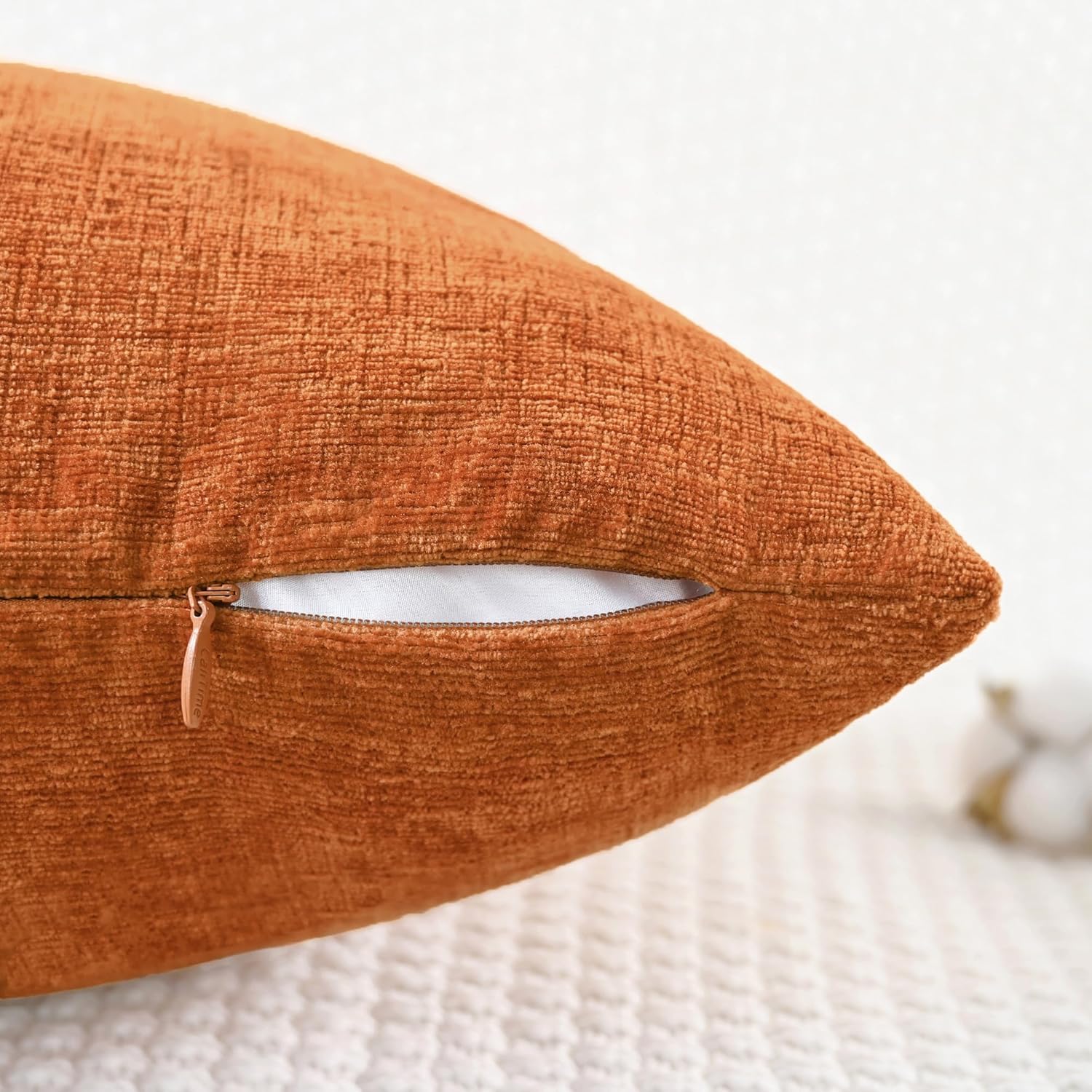 CaliTime Fall Throw Pillow Covers Decorative 22 X 22 Inches Pack of 2 Cozy Chenille Cushion Cases for Couch Sofa Bed Living Room Home Burnt Orange