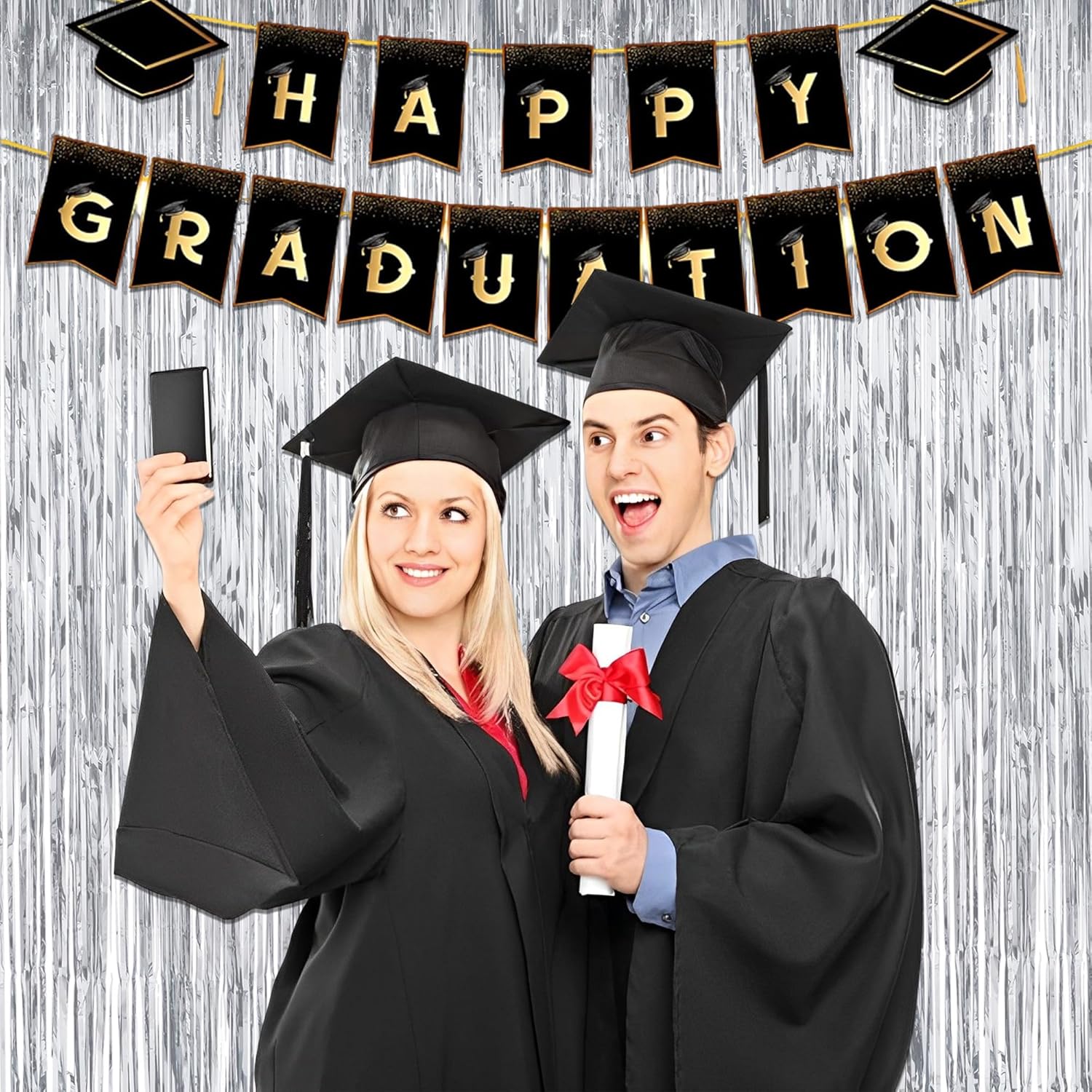 - Designed for convenience, this foil fringe curtain comes with tape for easy installation, saving you time and effort. Its shiny appearance adds a touch of wonder to any celebration, creating a magical atmosphere that delights guests of all ages. It can family gatherings and festive occasions, this silver backdrop is sure to make your event shine.