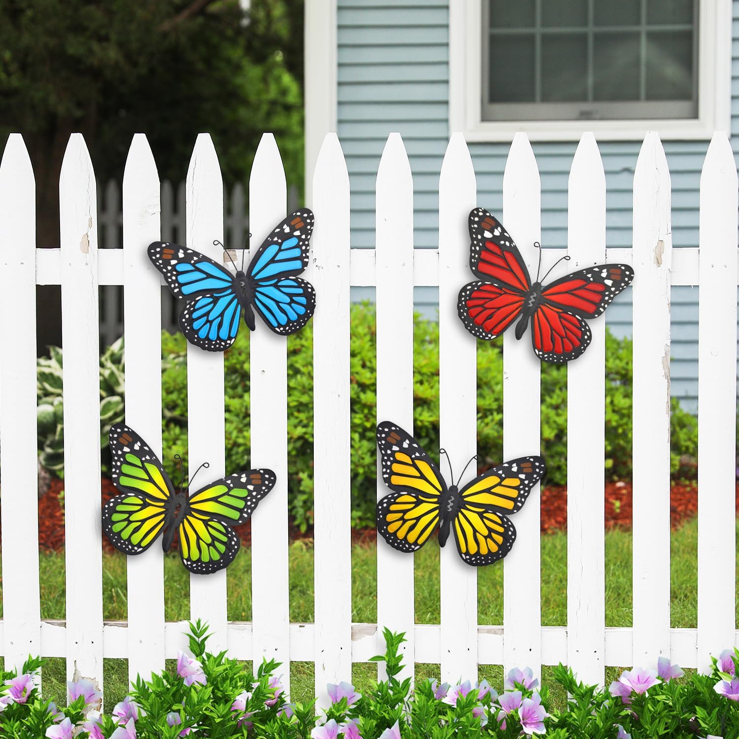 - Package Include: Set of 4 metal butterflies (blue, green, red, yellow). Butterfly size: 9.8''(L)x6.8''(W)