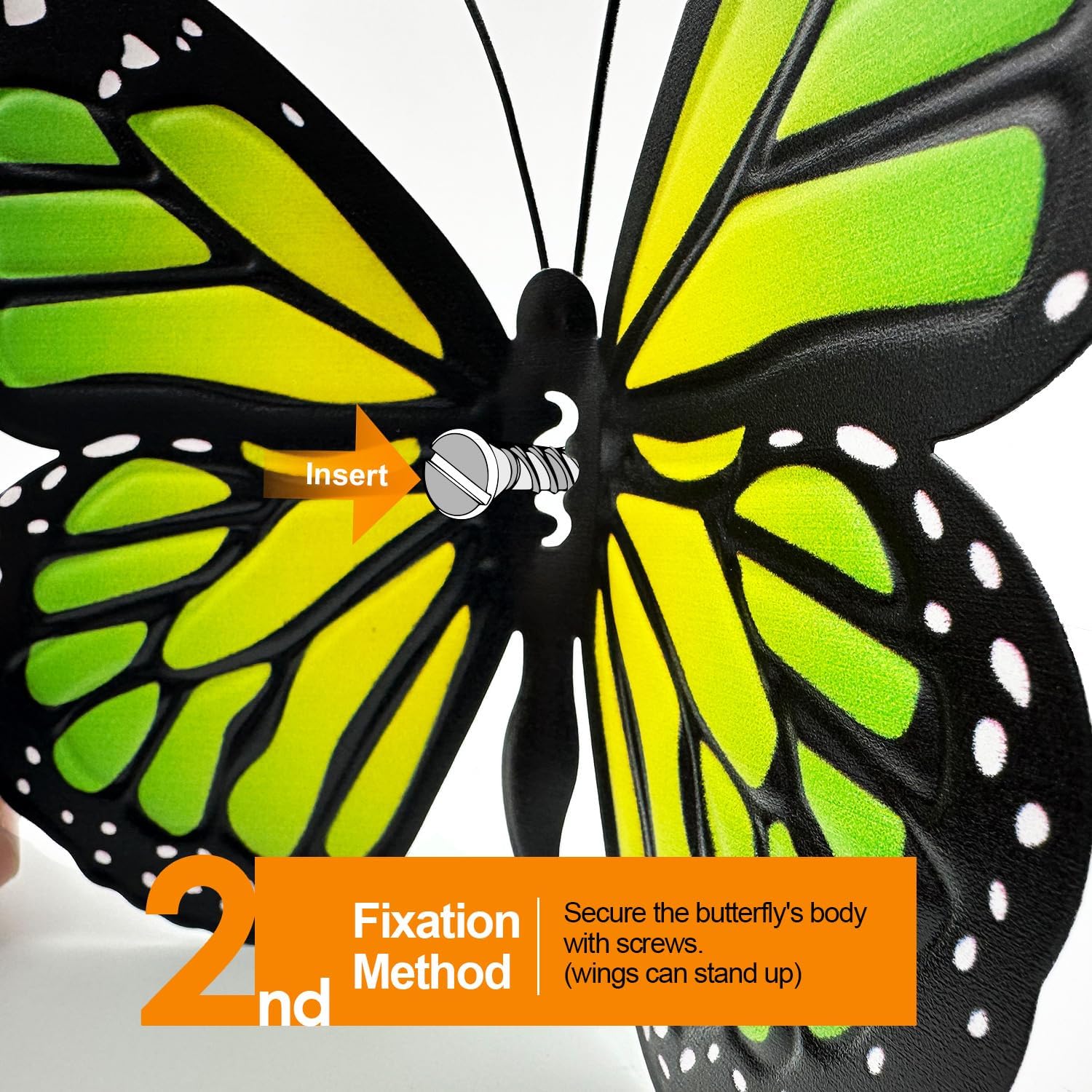 - Rust-Proof : Made of iron, High quality color printing and rust resistant baking paint to make the metal butterfly more durable and not easy to fade, Make the metal butterfly keeps its beautiful appearance under the sunlight and raining day.