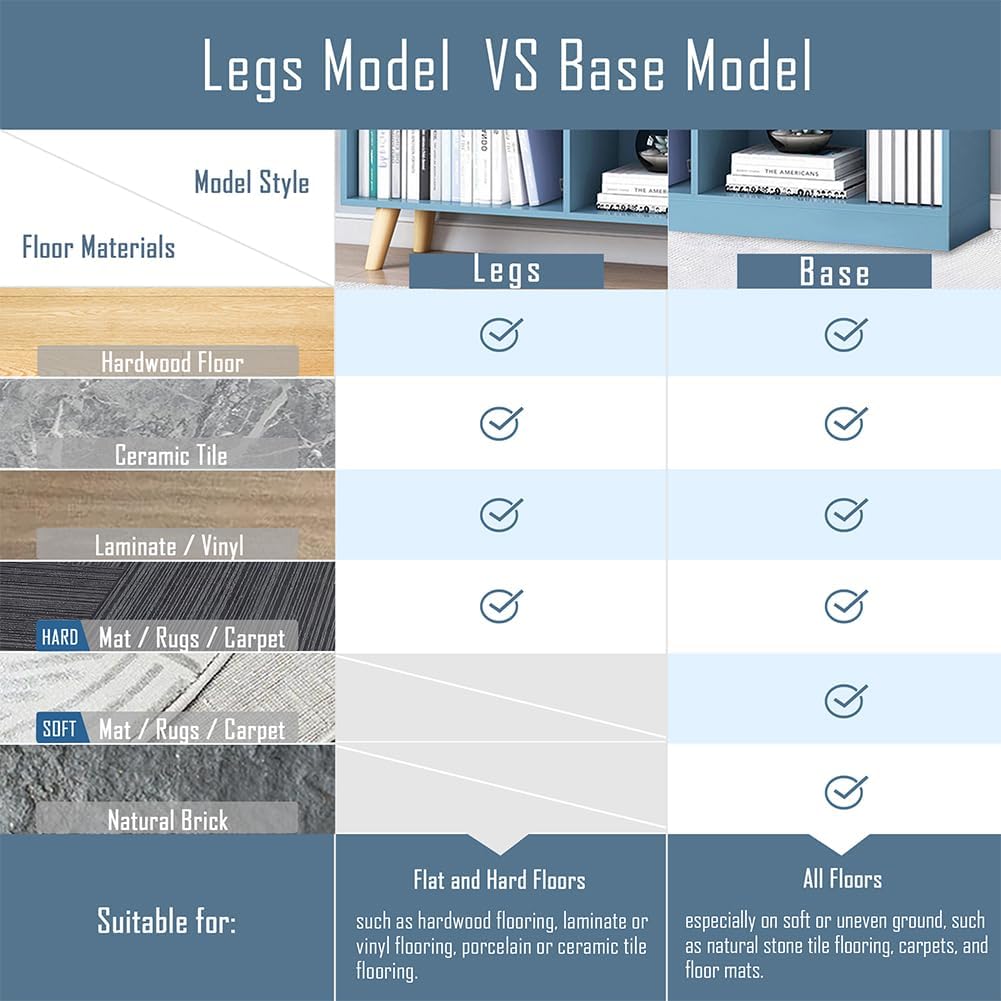 IOTXY Wooden Open Shelf Bookcase - 3-Tier Floor Standing Display Cabinet Rack with Legs, 7 Cubes Bookshelf, Bright Blue