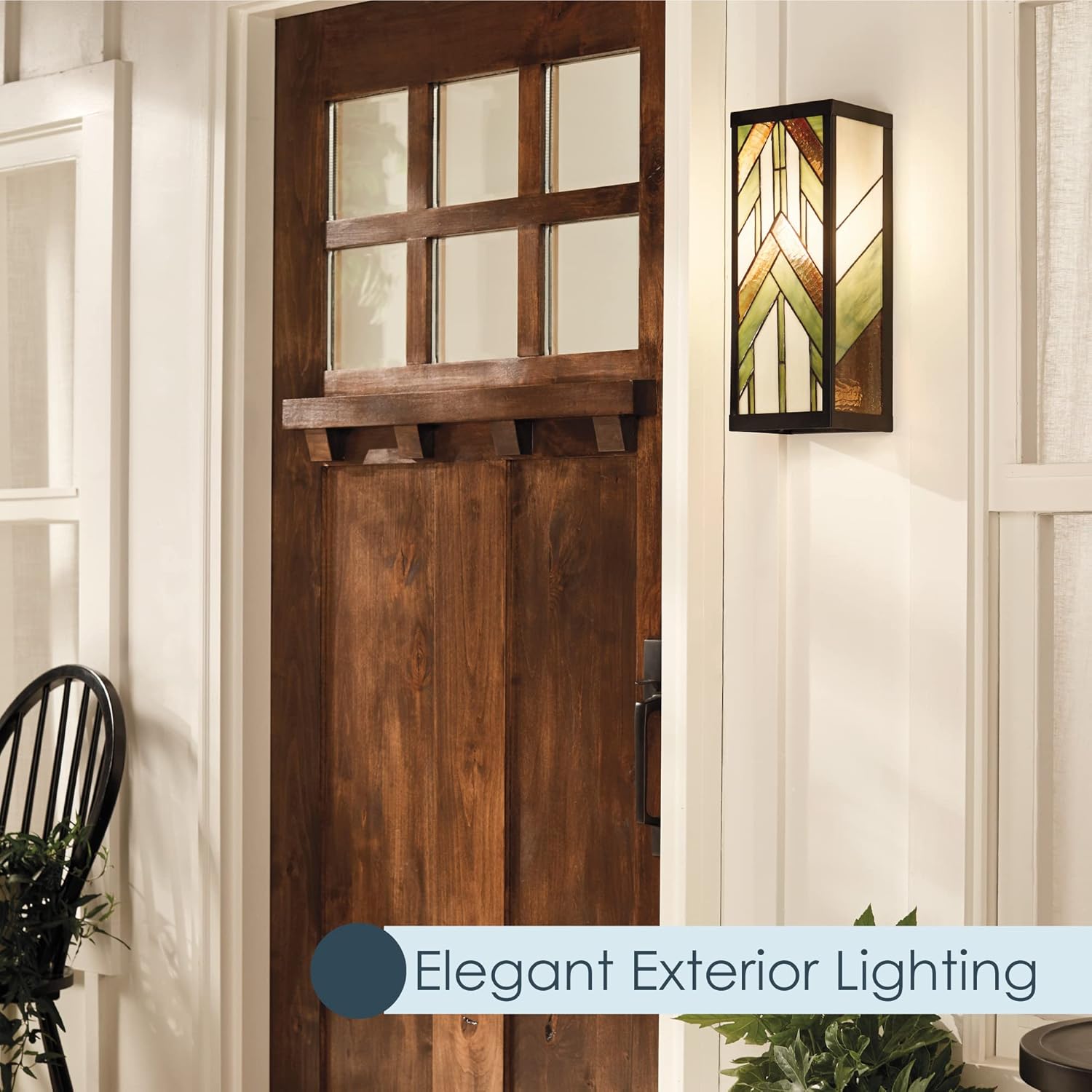 - OUTDOOR LIGHTING: Bring a modern look to the exterior of your house with one of our decorative fixtures. This stained-glass wall lighting emits a subtle, warm glow and requires one E26 100W incandescent bulb or one 9W LED bulb, not included.