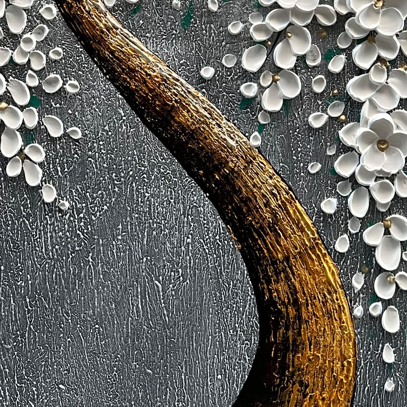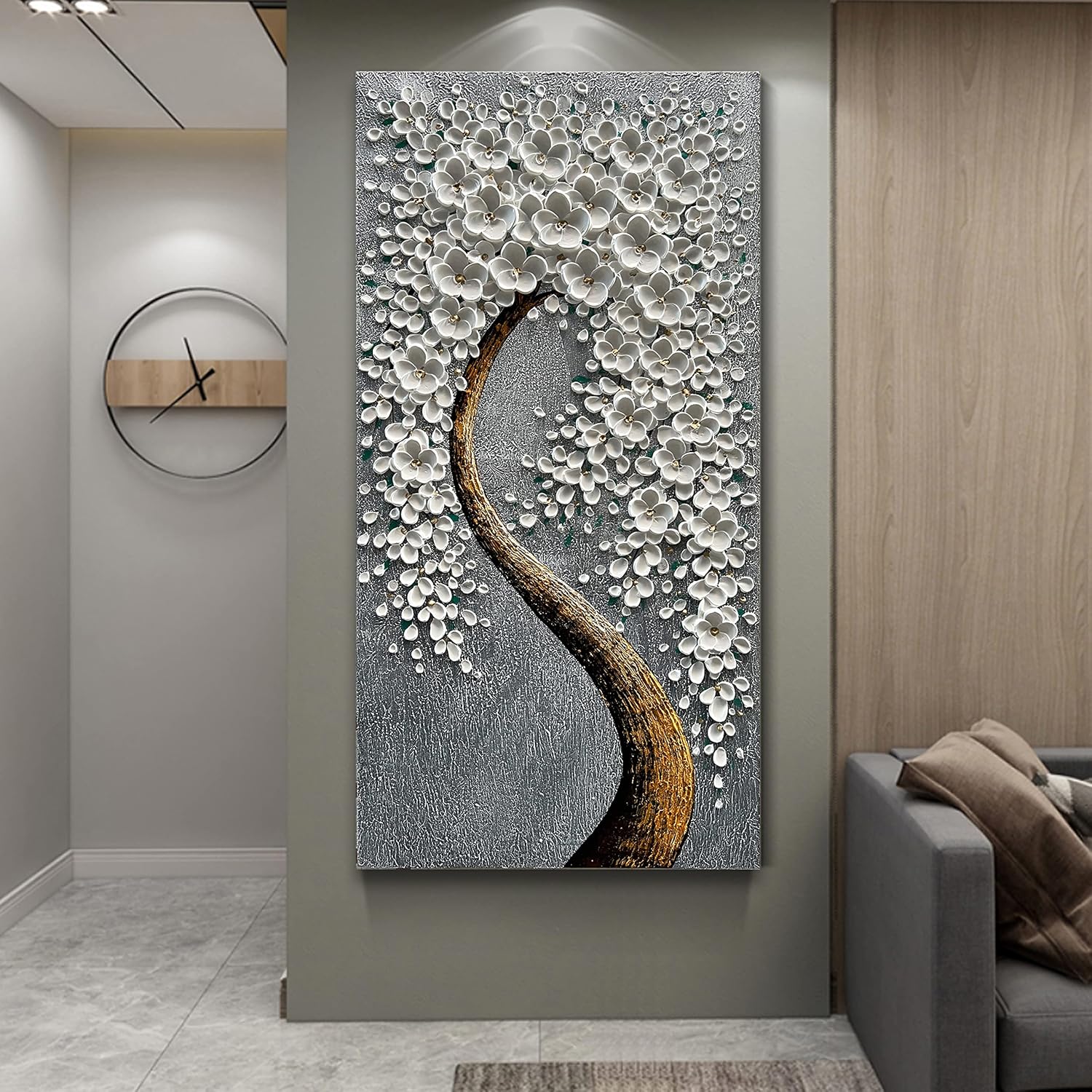 100% Hand-Painted 3D White Vertical Abstract Flower Tree Painting, Canvas Texture Mural, Living Room, Bedroom, Dining Room Mural 24x48 inchs