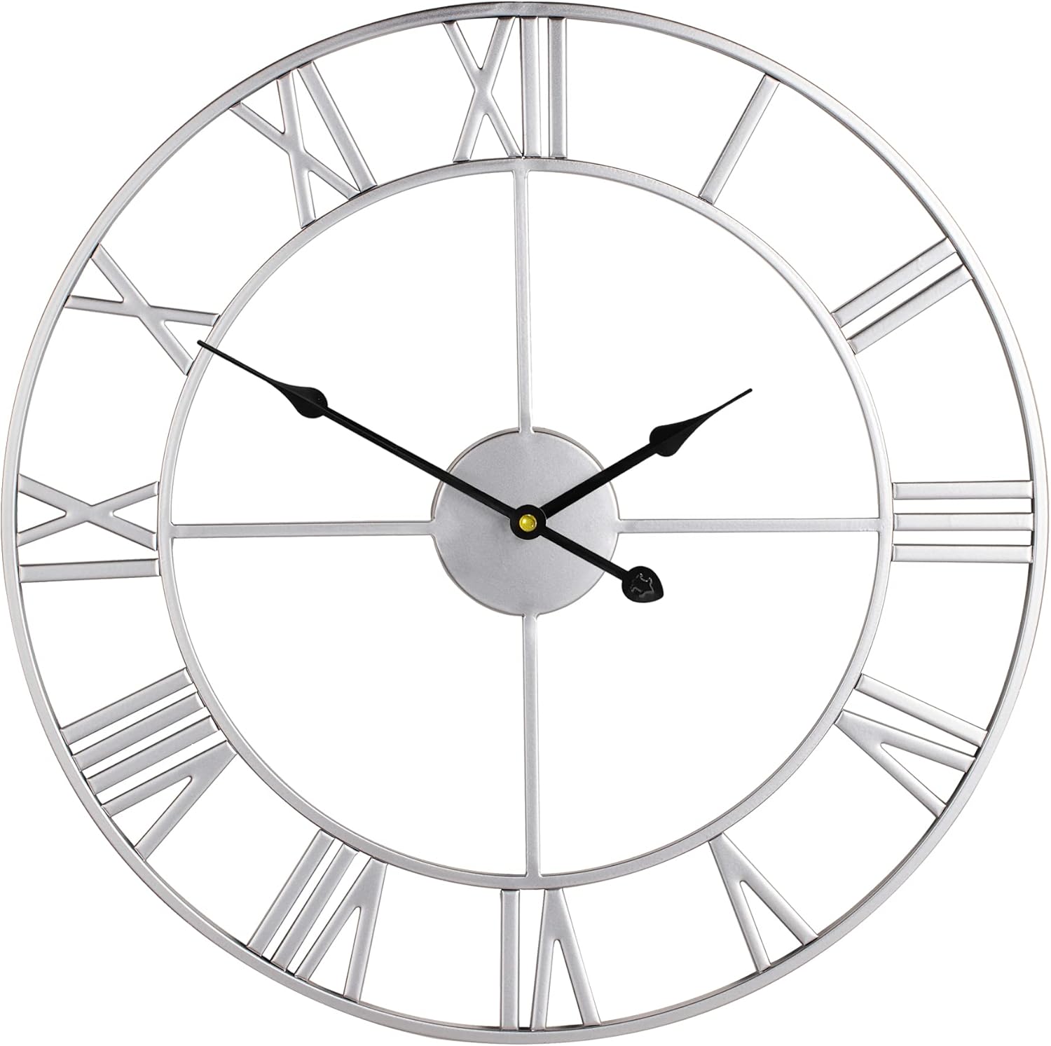 LEIKE 16" Modern Large Wall Clocks,Vintage, Round,Silent Non Ticking,Battery Operated,Silver Metal Roman Numerals Clock for Living Room/Bedroom/Kitchen Decor