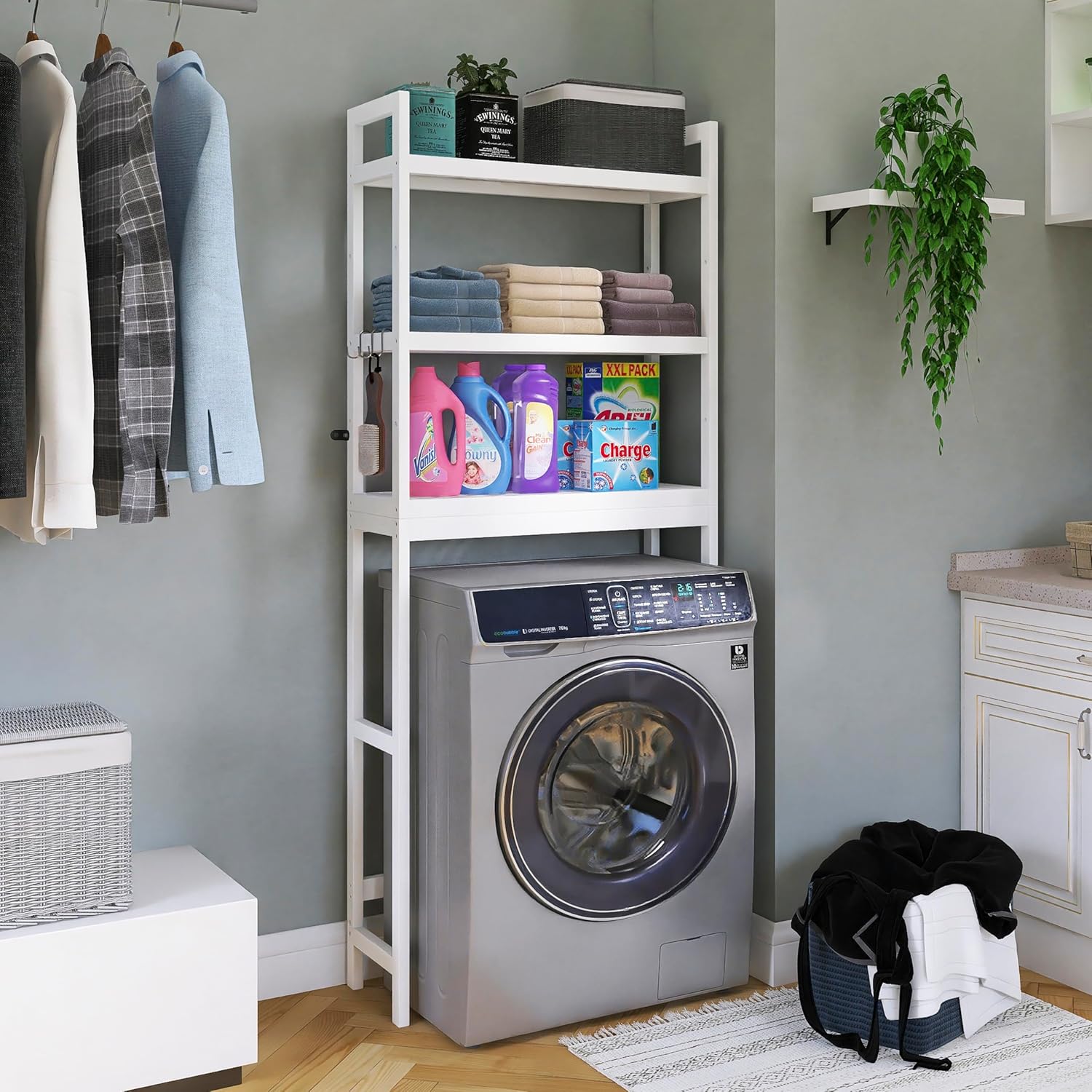 - DO’T WASTE SPACE ABOVE the TOILET: Designed to make full use of the blank space above the toilet, this space-saving toilet storage rack give you 3 adjustable shelves to hold all your bathroom essentials. Besides, placed it above the washing machine to store care supplies also would be a good idea