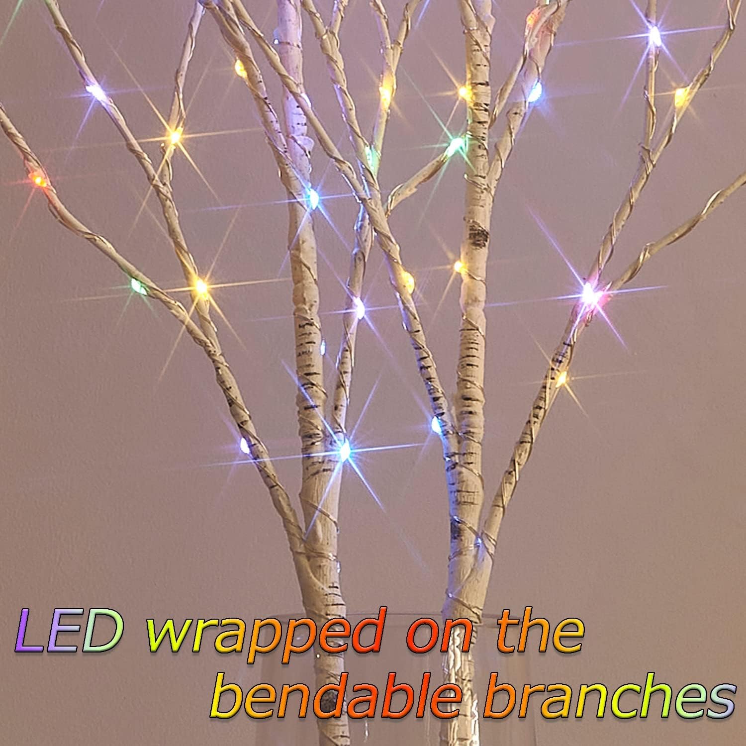 - 【HEAVENLY LIGHTS】: Up to 70 Multiple colors micro LED bulbs nestled on the lighted stick cast a subtle glow that adds warmth to your home and holiday decor (Vase NOT included)