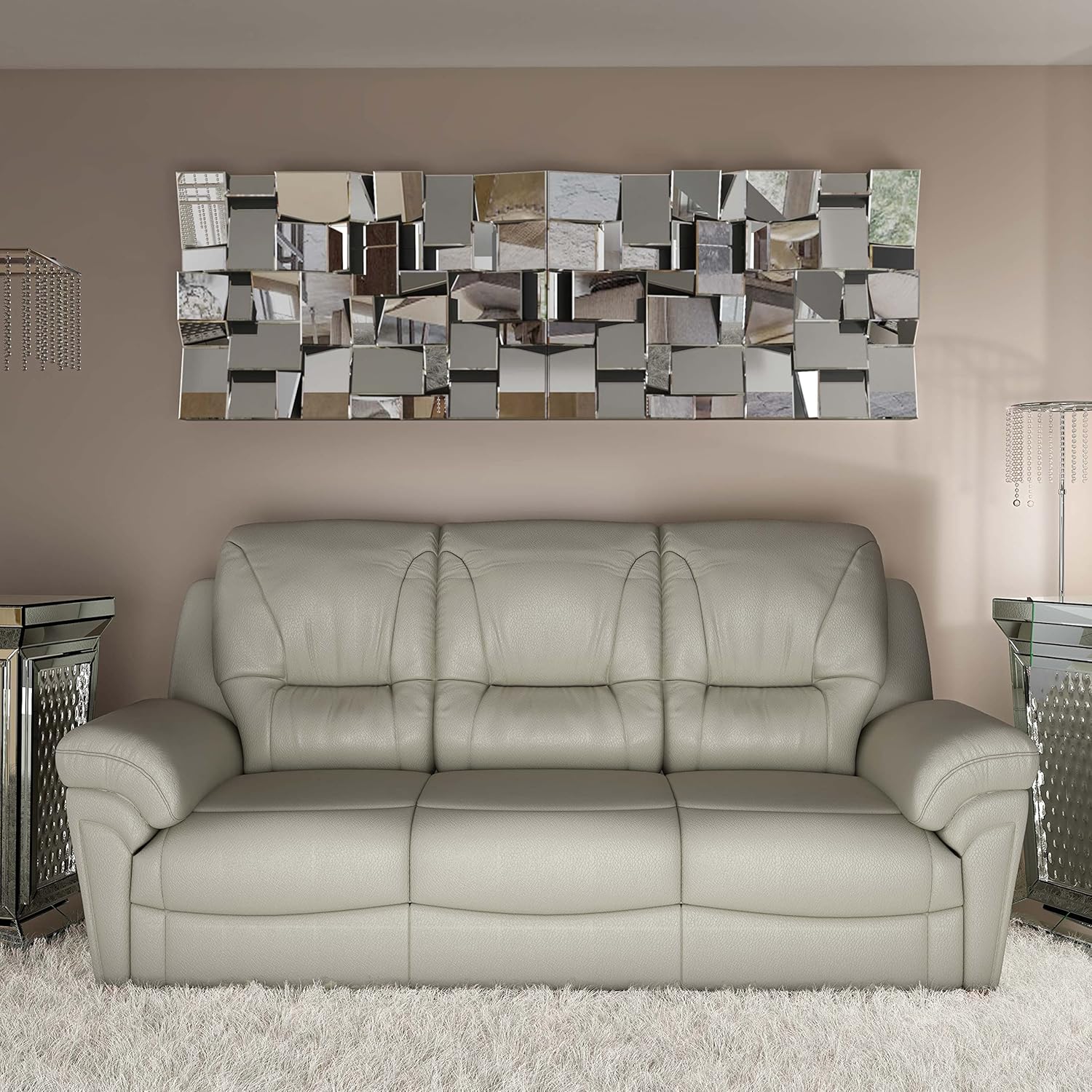 - HIGH QUALITY The mirror is composed of 48 high-definition 4mm tempered silver-plated glass mirrors, and the back panel is made of medium-density fiber material. The sturdy back panel can support and protect the glass mirrors, making it difficult to break or fall off.