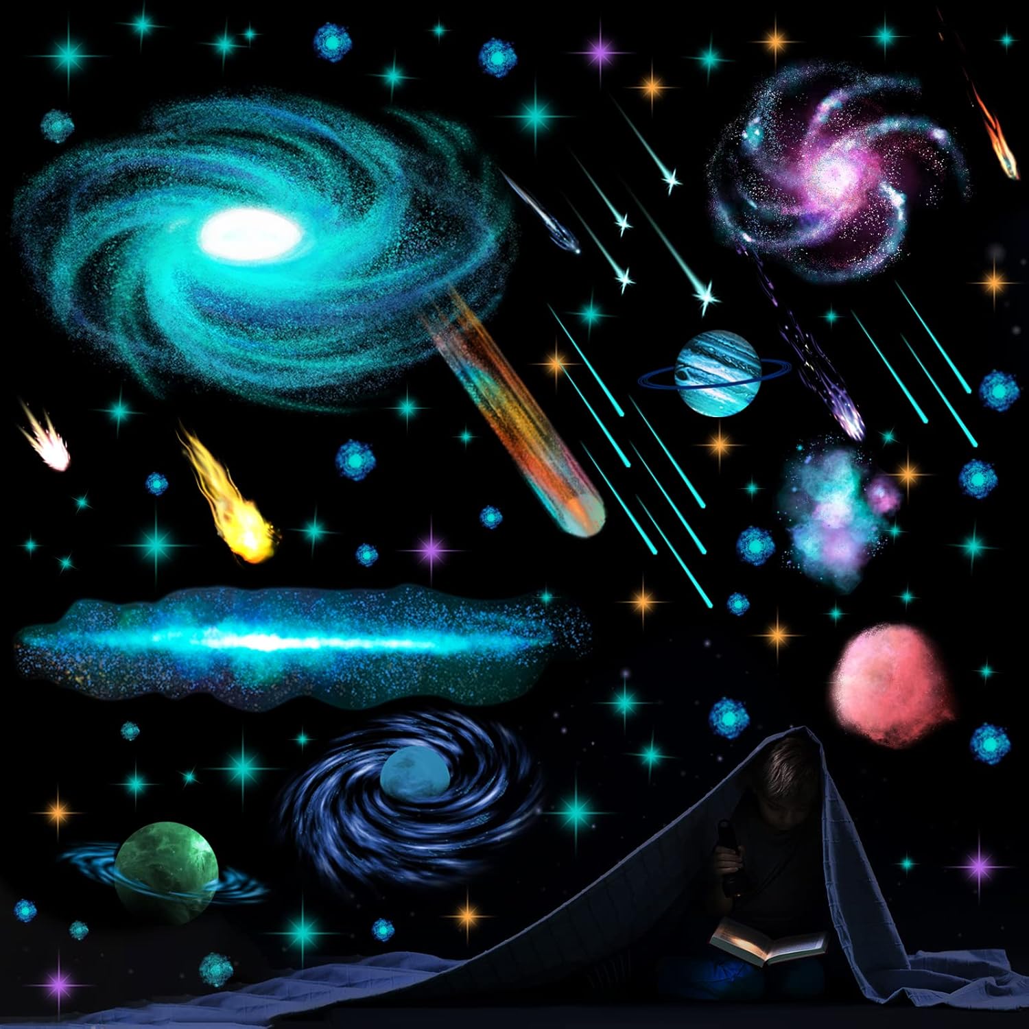 - Glow in the dark: after absorbing the light for 15-30 minutes, these glow in the dark star decals would shine in the darkness automatically, light your universe and let your immerse in the quiet and ease atmosphere; Nice tools to lull children to fall asleep