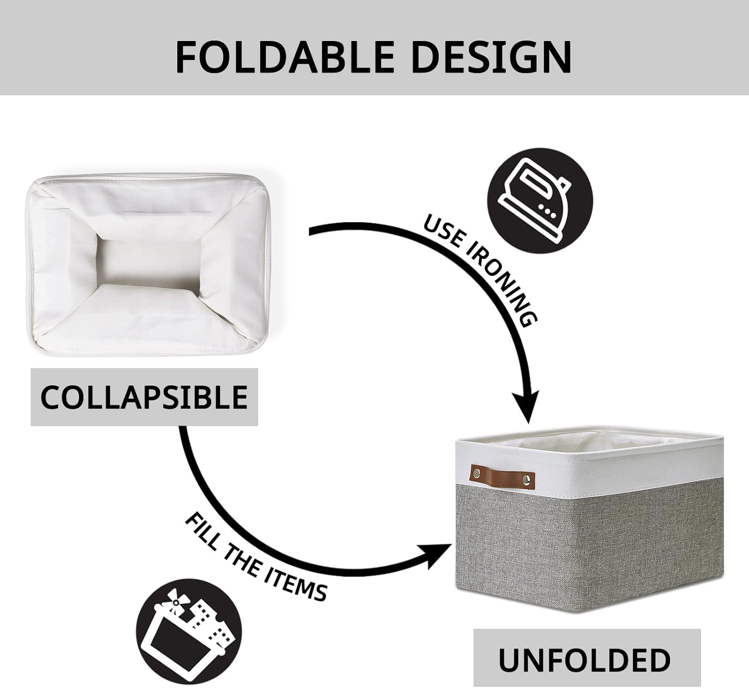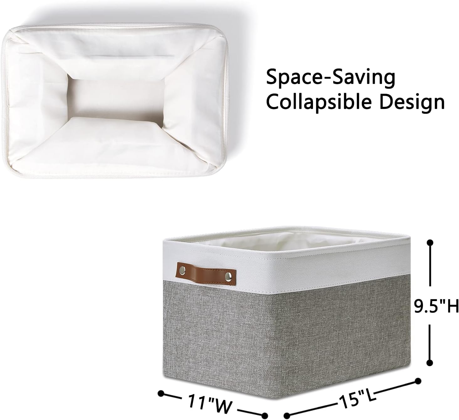 DULLEMELO Fabric Baskets for Storage, Office, Home,Nursery,Organizing Baskets for Shelves, Bedroom, Toys,Gift,Fabric Storage Basket with Handles(White&Grey,15"x11"x9.5",4-Pack)