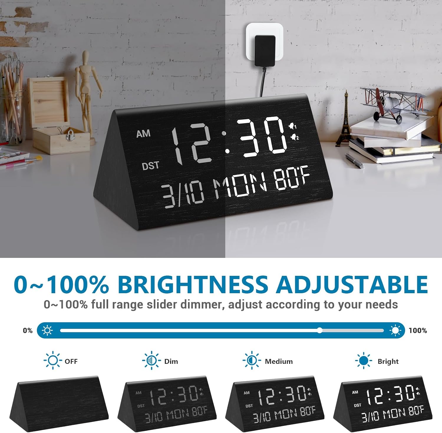 - ⏰【Stylish Wood Grain Surface】- This exquisite digital alarm clock is made of high-quality wood and has a stylish design. It is not only a clock, but also a perfect decoration for your home. You can put it anywhere in your room, on your bedside nightstand or living room table. The stylish appearance and multiple functions make it suitable as a gift for your family or friends.