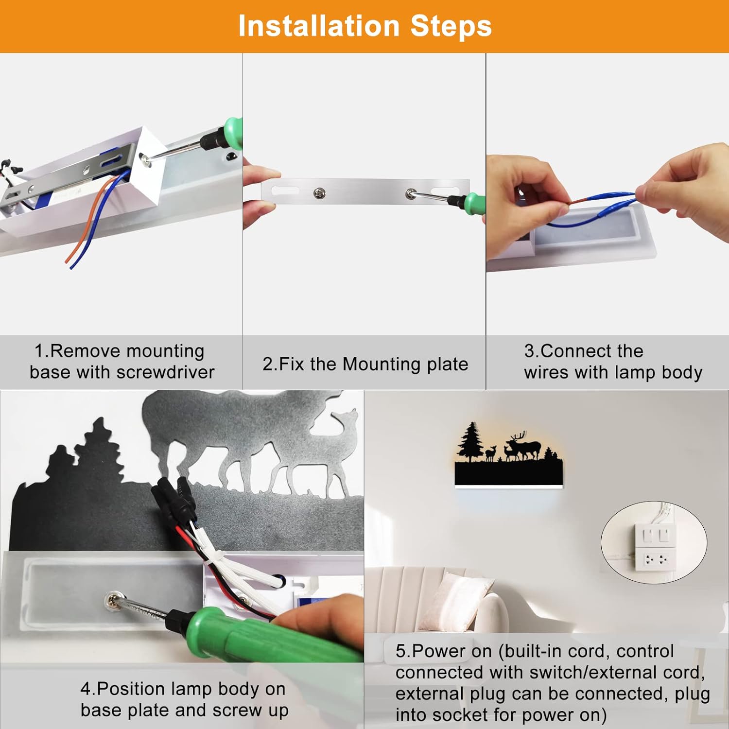 - 【Easy to install】 No professional experience required to install wall lighting, just follow the simple installation instructions for perfect installation, There is no need to distinguish between the two wires, any one of the wires is connected to the live wire of the home circuit, and the other is connected to the neutral wire. but for safety, please install under the guidance of professionals.