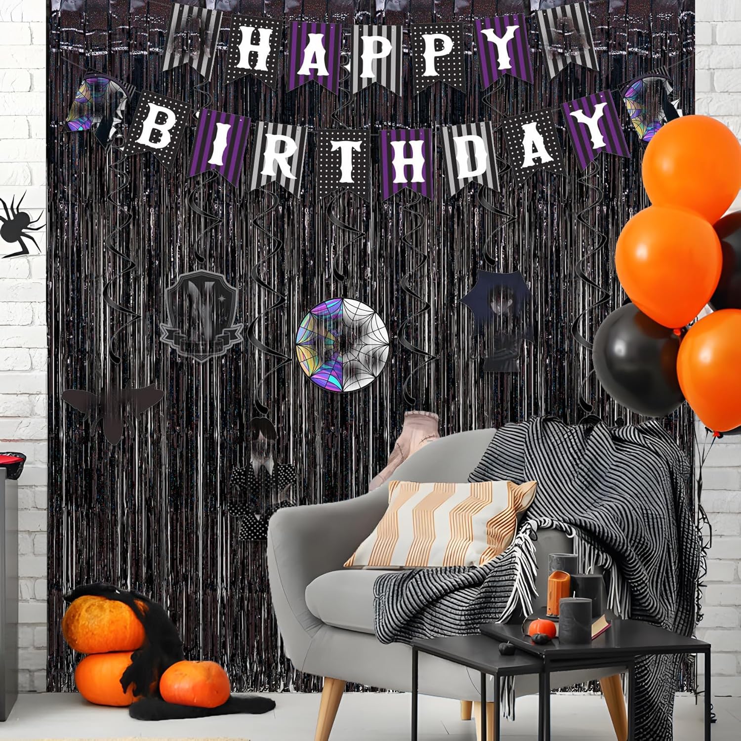 - Black Party Streamers Backdrop 3.2ft x 8.2ft 2 packs.