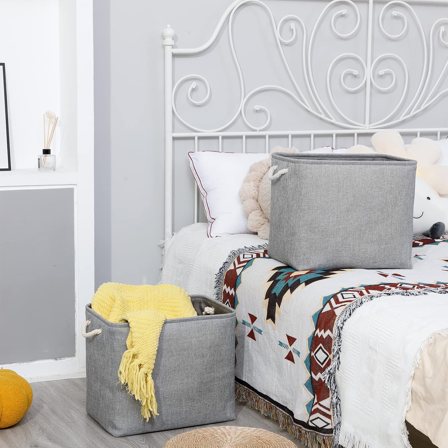 - [Multipurpose Storage] These large linen storage baskets for organizing provide an efficient solution in your home, office or travel to meet many storage needs such as organizing clothes, towels, blankets, toys, baby products, pet products, magazines, newspapers, camping tools, etc. Its storage capacity can keep the family tidy and beautiful, shelf baskets for organizing closet are a wonderful choice