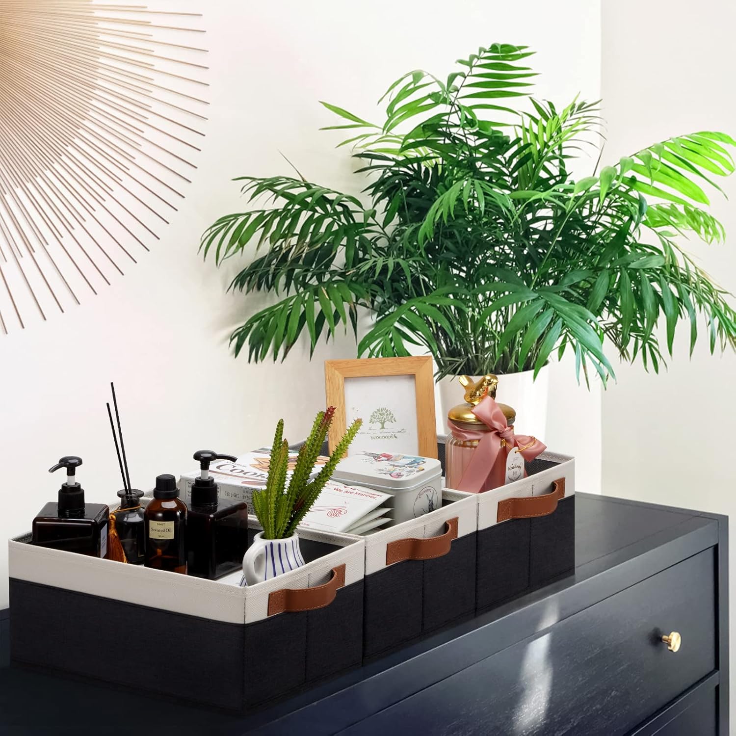 - 👍【FOLDABLE STORAGE BASKET】The collapsible and lightweight baskets for organizing allows you to easily place it when not in use, just by pulling out the stiff bottom cardboard, saving space when not in use or transportation. They are quite easy to assemble, place the stiff bottom cardboard inside and it's ready