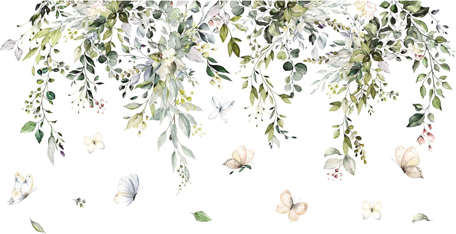 - The green vine decals on the wall is really great decorations for any smooth wall or window decorations, holiday party supplies. Add some color to your room, create a cute and lively atmosphere. Finished Size: 45.3” x 32.3” / 115cm x 59cm. This green vine leaf wall decals include 2 sheets. Each size: 12” x 36” / 30cm x 90cm.