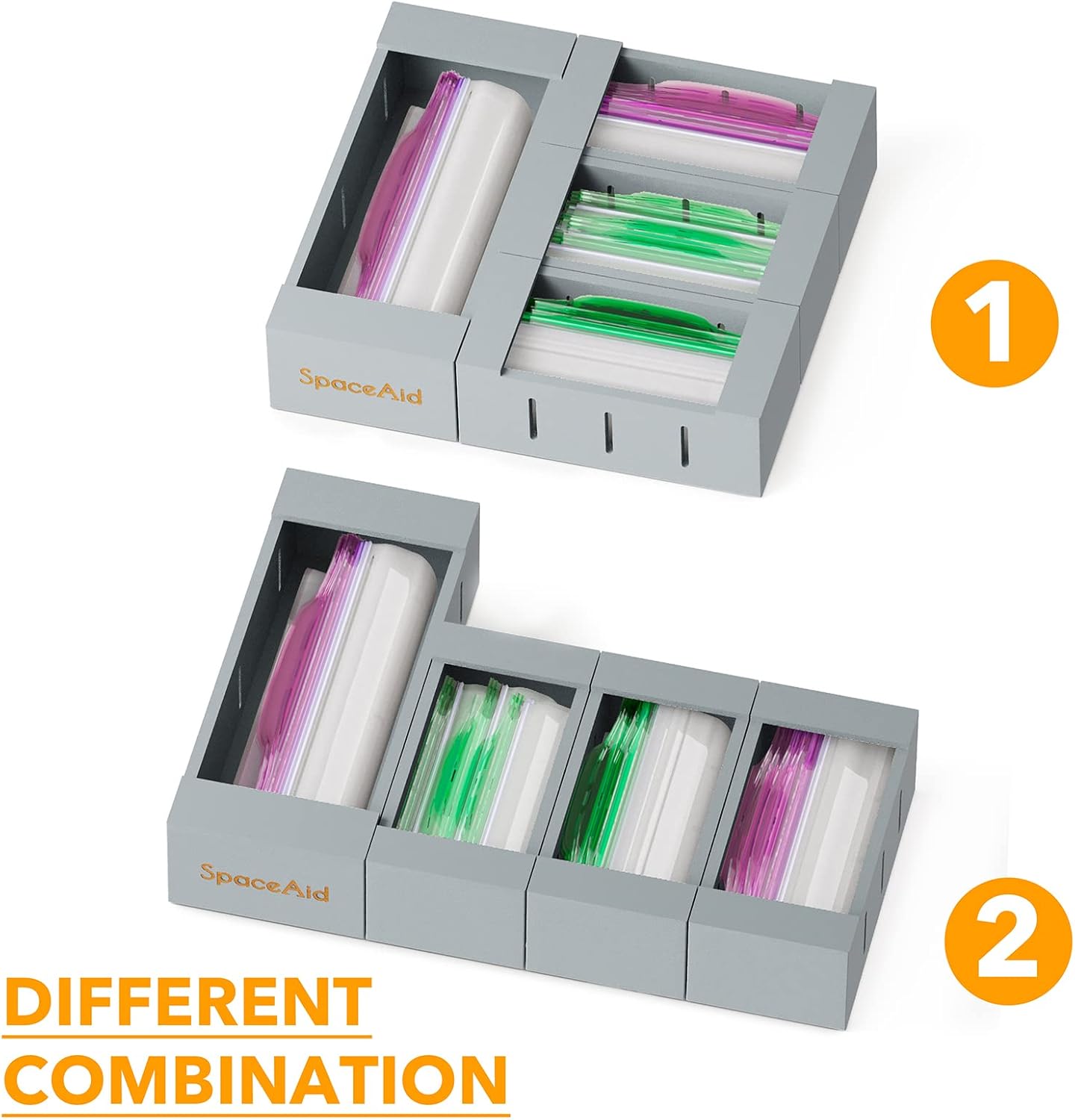 - 4 Boxes with 2 Sizes: Multiple boxes offer you a few customize combinations to organizer food-storage plastic bags, which can fit in different sizes drawers to meet your needs