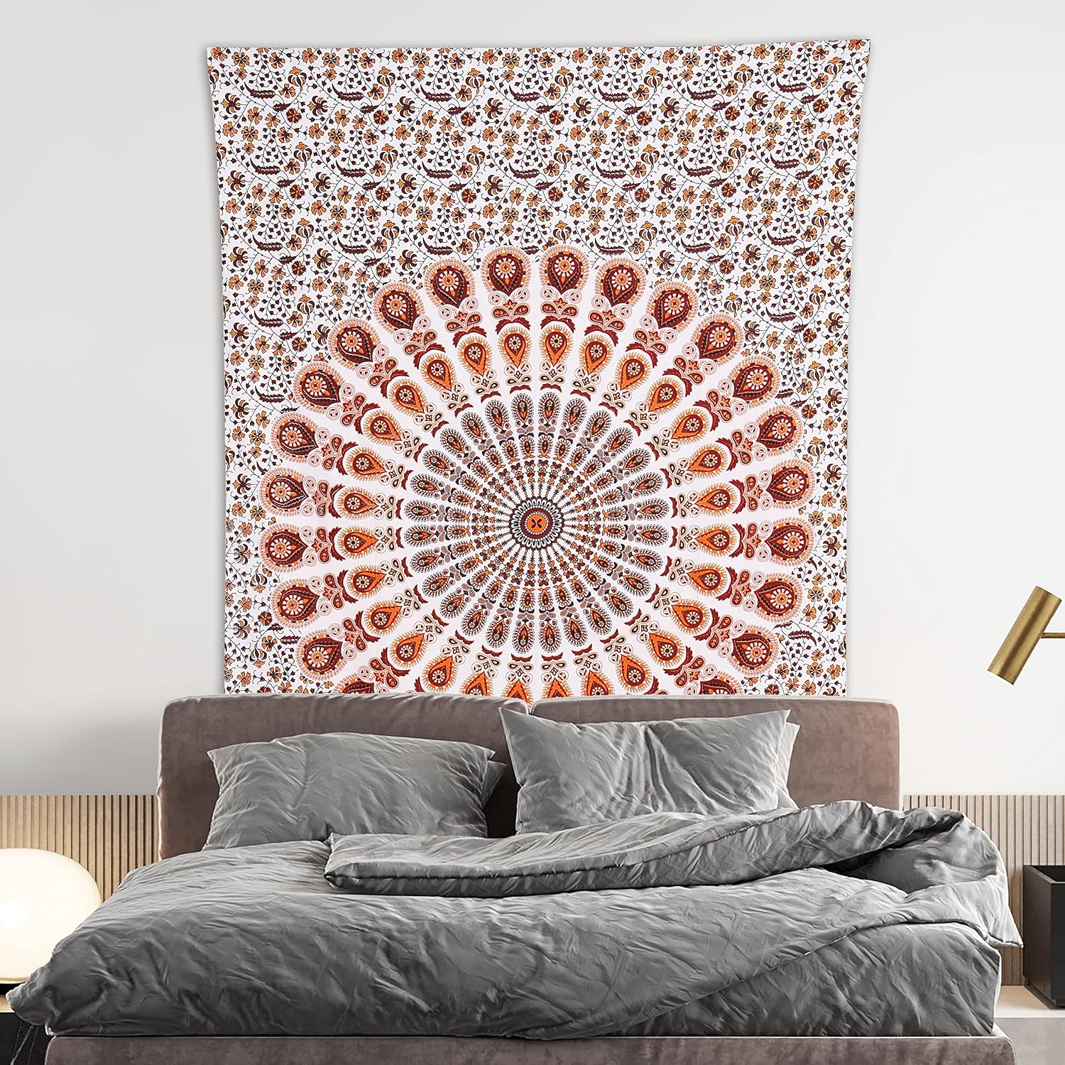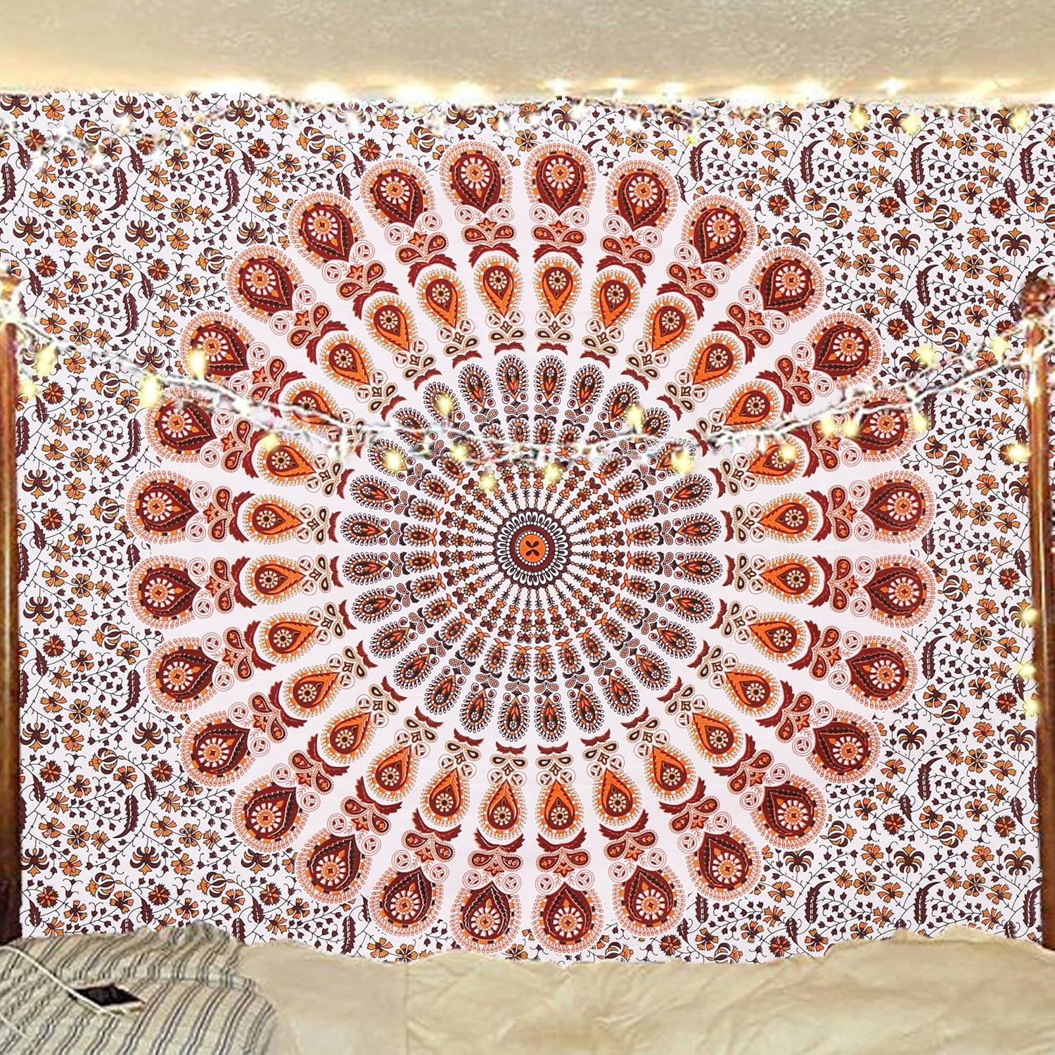 Bless International Handmade Indian hippie Bohemian Psychedelic Peacock Mandala Wall hanging College Dorm Beach Throws Table Cloth Bedding Tapestry (Orange Brown, Poster(30x40Inches)(76x101cms))