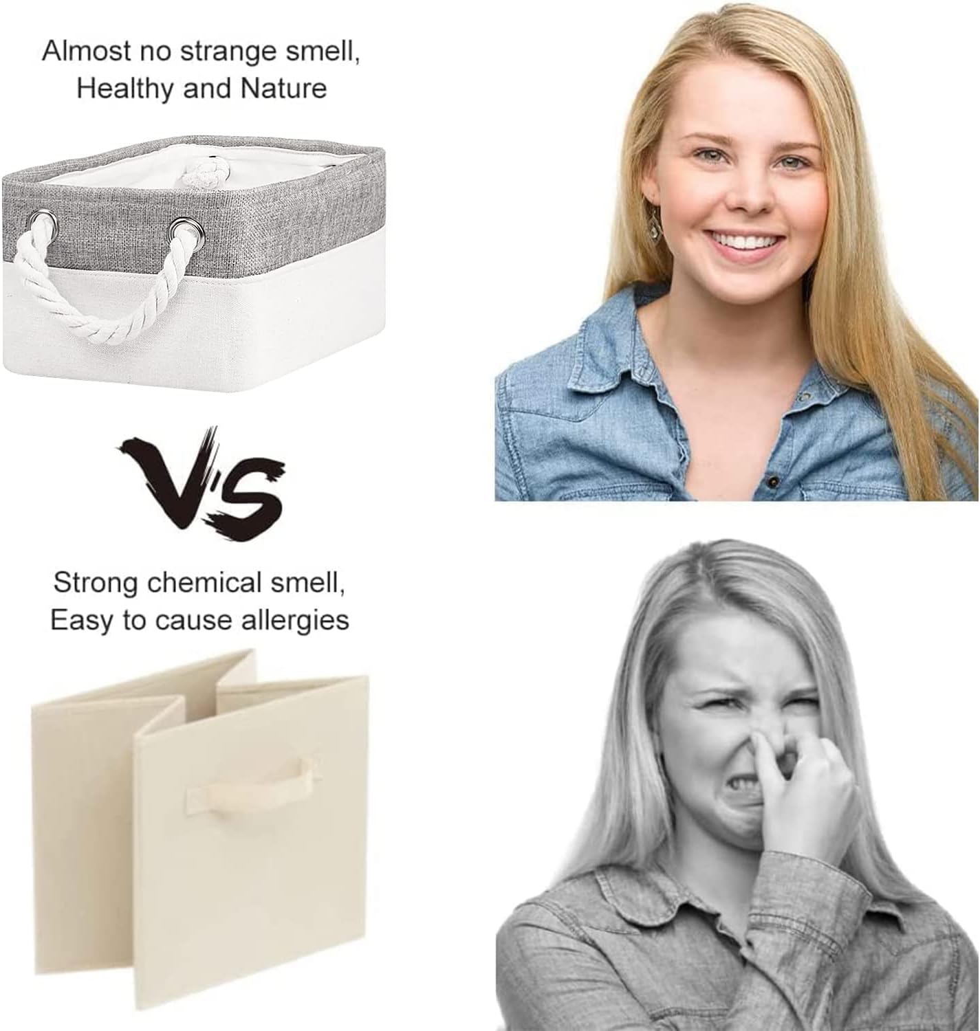 - With modern and stylish design, our storage baskets combine both of the decorative and practical forms. All of our baskets are made of fabric like cotton, linen. They are stylish, sturdy and reusable. These small storage bins can be a beautiful and functional accent to any room. They are not only household life good helpers but also charming decorations