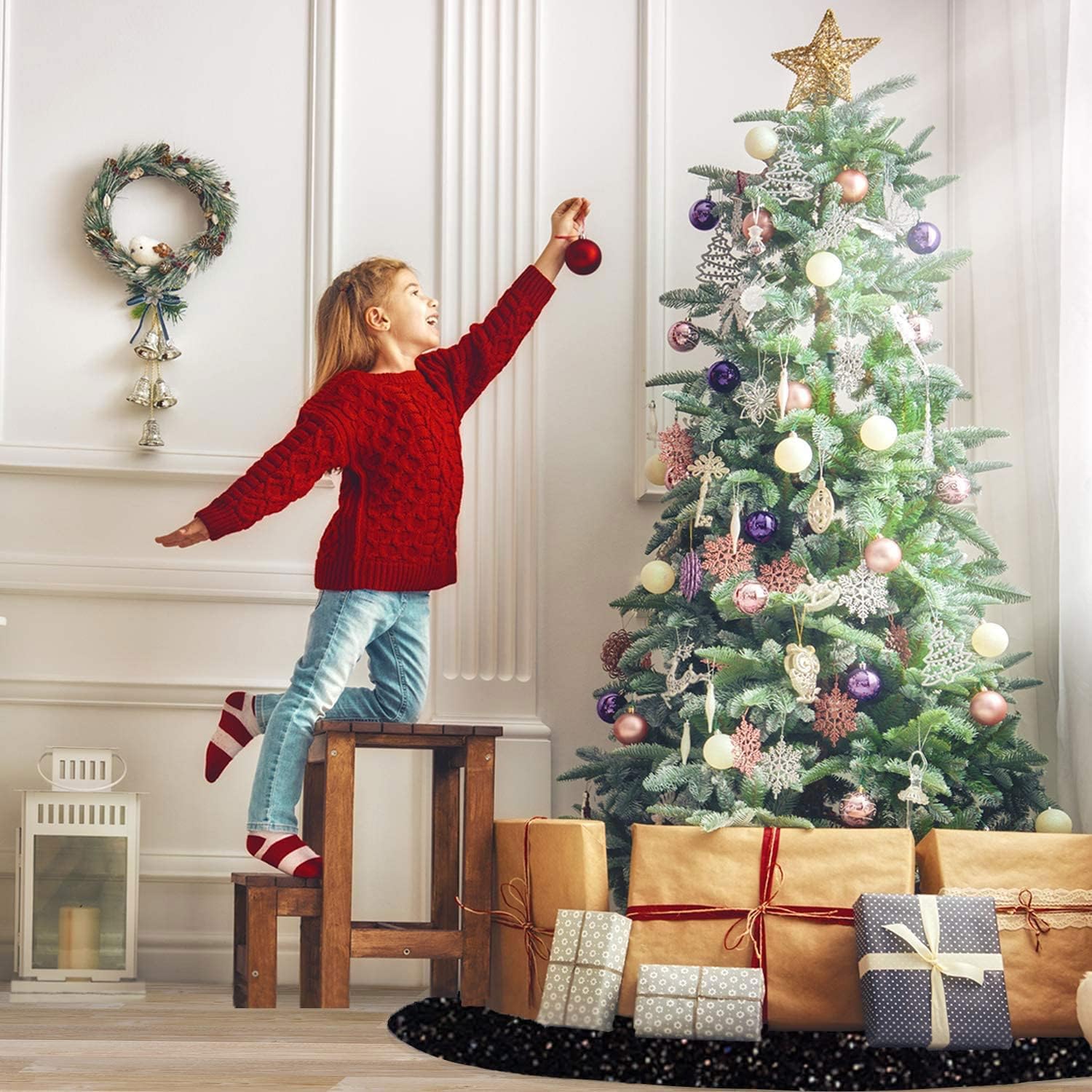 - ❄️【Sturdy Material - Black Santa Tree Skirt】Our Christmas sequin tree skirts are made of premium 5mm sequin fabric and thick velvet material, which can show bright color at any angle. Different from the traditional sequin Santa trees skirt, this Santa tree mat won't fall off sequins, more elegant and shiny, adding festive fun to your home.