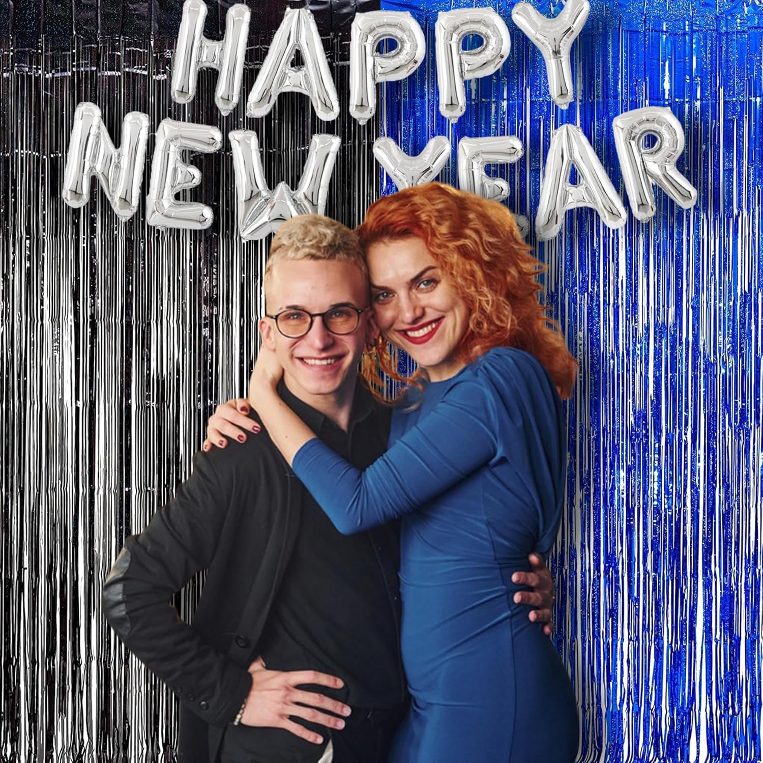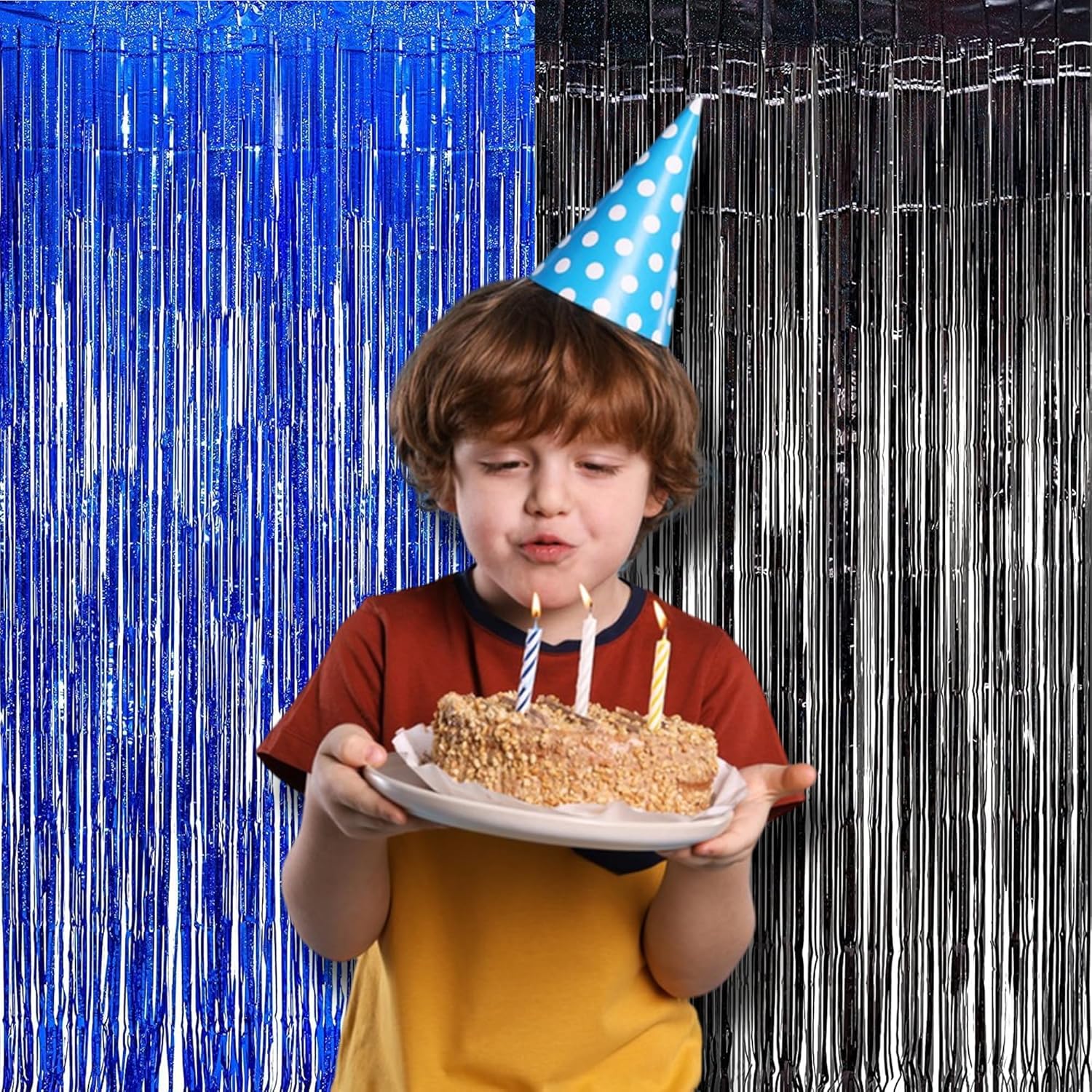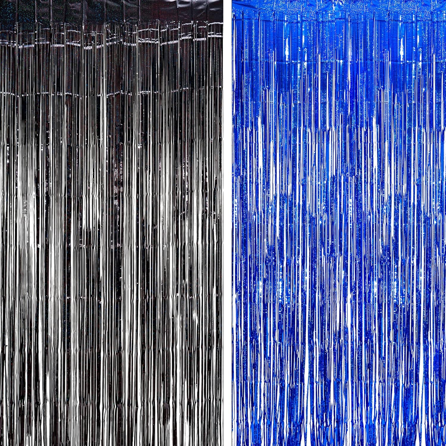 Foil Fringe Curtain Party Decorations - Black Blue Metallic Tinsel Photo Booth Backdrop Party Steamers Curtains for Birthdays Christmas New Years Homecoming Decoration