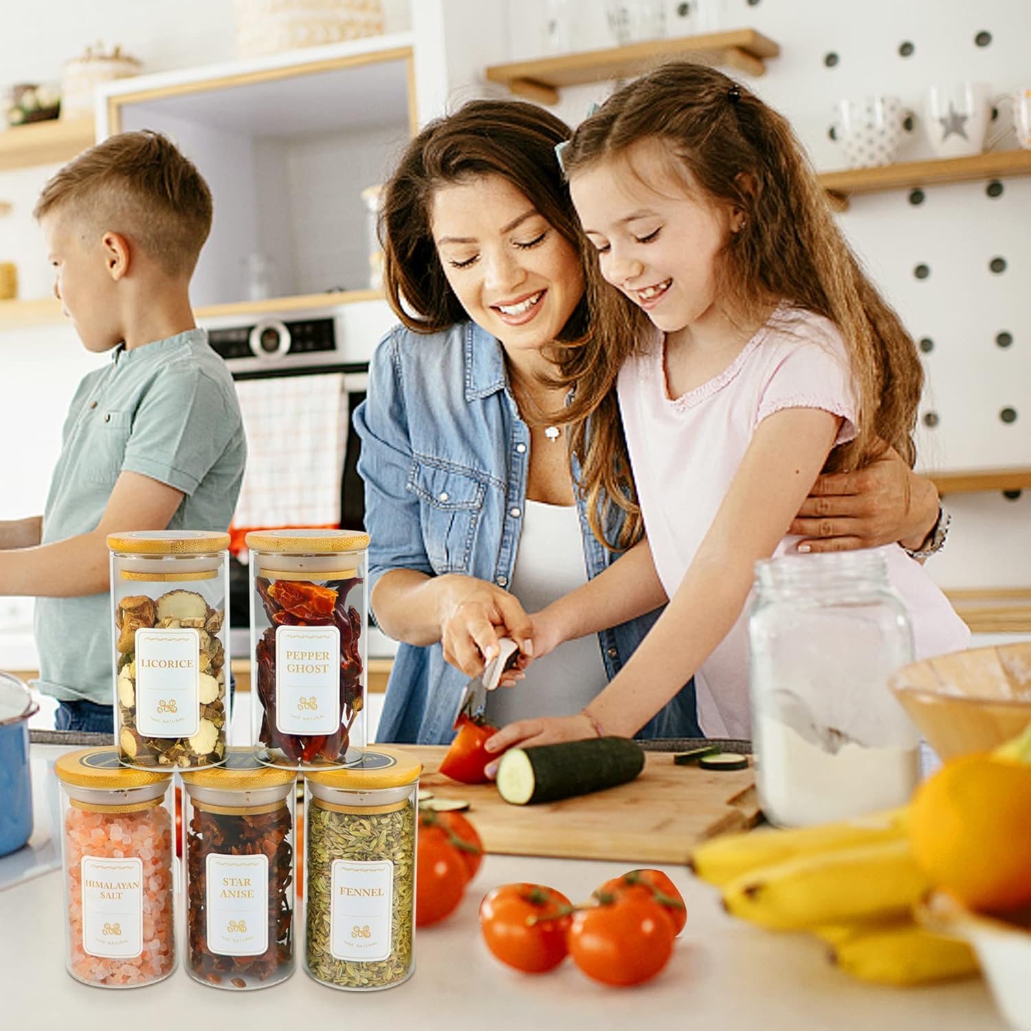 - 【Effortless Organization】Seasoning jars with labels (426 labels, 4 styles) end "where's the sage?" hassle. Small spice storage containers with labels and lids feature uniform stackability, while glass seasoning containers maximize cabinet space neatly.