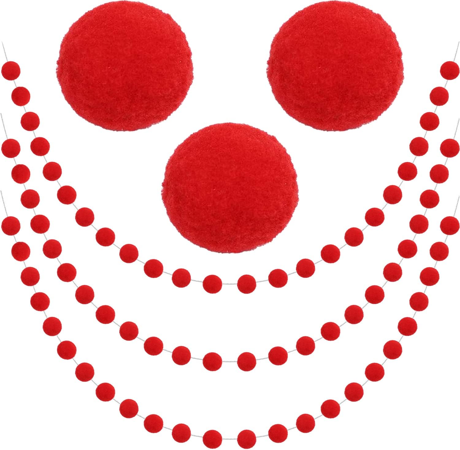 - RED FELT BERRY CHRISTMAS GARLAND PACK OF 3: Each Felt Ball Pom Pom Garland contains 24 Pom Pom Balls, 6.6 feet/ 2m long and the Pom Pom Ball is 25mm in diameter, no knots in the felt pom pom garland, so the distance between the felt balls and the length of the garland can be adjusted. Jishi 3 strands of elegant felt ball garland set will meet your daily, festive holiday, christmas, birthday and parties decoration needs. NOTE: Winding Risk May Exist, Please Keep Away from Kids Under 3 Years Old.