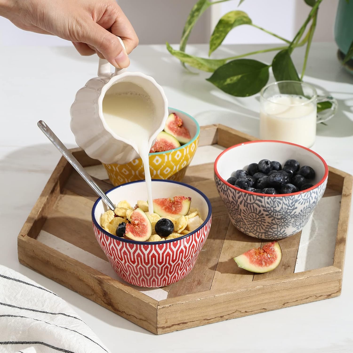 - OUTSTANDING DESIGN - These small bowls feature a curved design and are decorated with vibrant colors & fun patterns. They are bold and bright that add a pop of beauty to your dining table or kitchen. Rejuvenate your daily life with this gorgeous tableware.