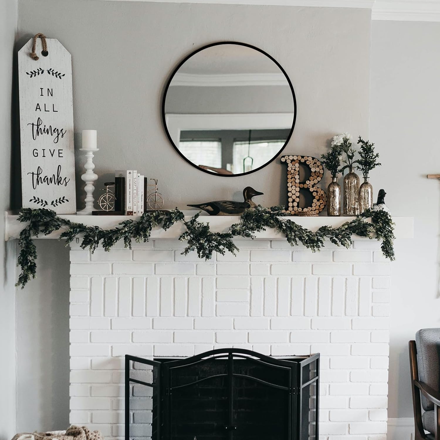 - Perfect Fit Interior Design - Great value and an excellent addition to your guest bathroom, which goes well with country chic inspired guest bathroom. And the simple round mirror is perfect fit for the entry way, bedroom, living room, baby nursery, office, which is a good wall decoration