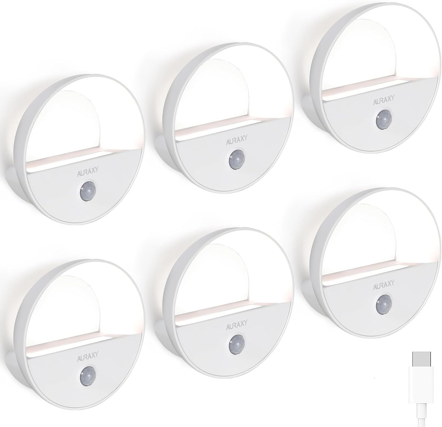 Rechargeable Motion Sensor Night Light, Battery Night Lights LED Cool White Magnetic Stick-on Motion Sensored Hallway Light, with Dusk to Dawn Sensor for Stair, Wall, Bedroom, Bathroom(6 Pack)
