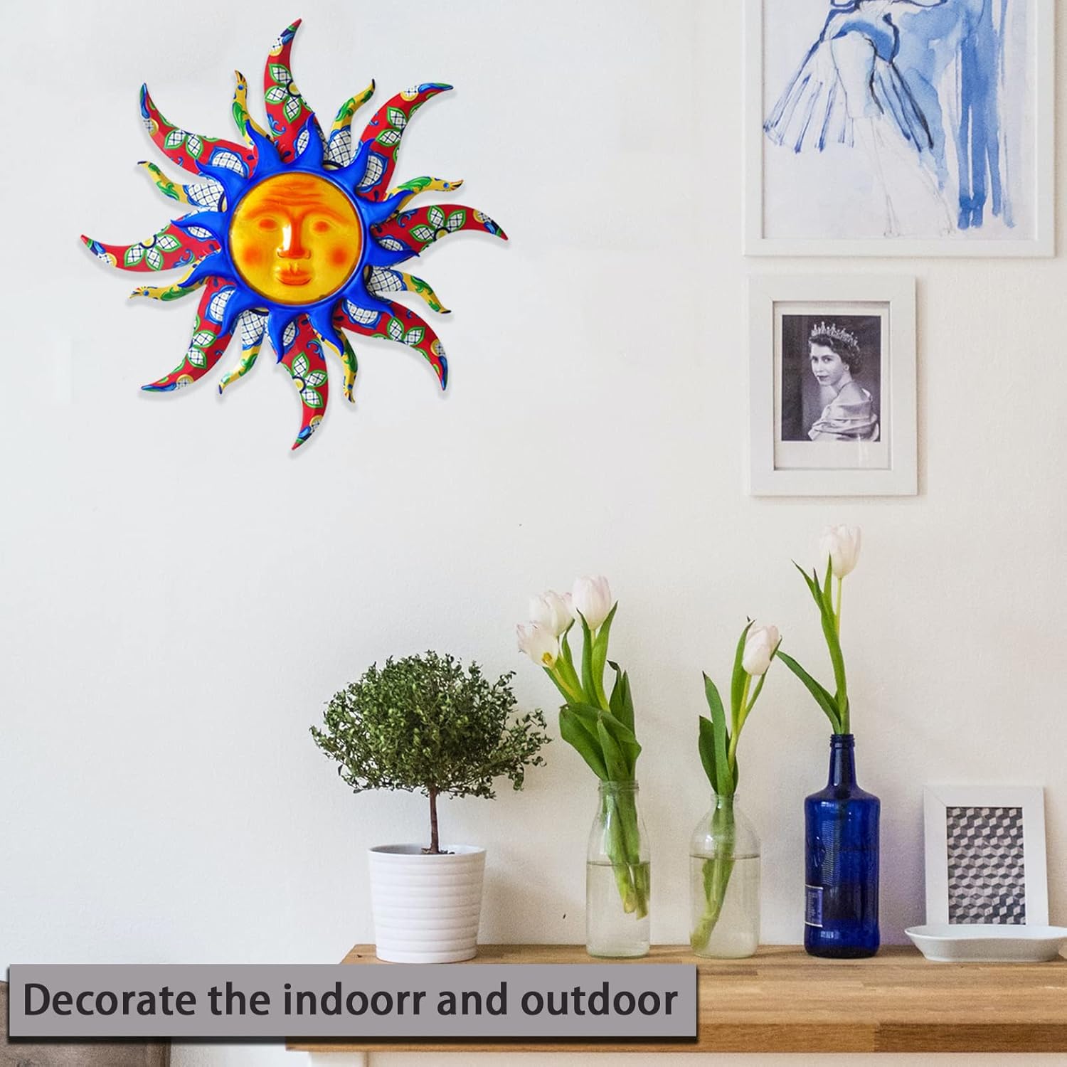 - 【 Metal Wall Art 】 : Mexican style Sun wall decor, using high-quality metal, hand painting spray paint, exquisite patterns and bright colors to bring vitality to your wall.