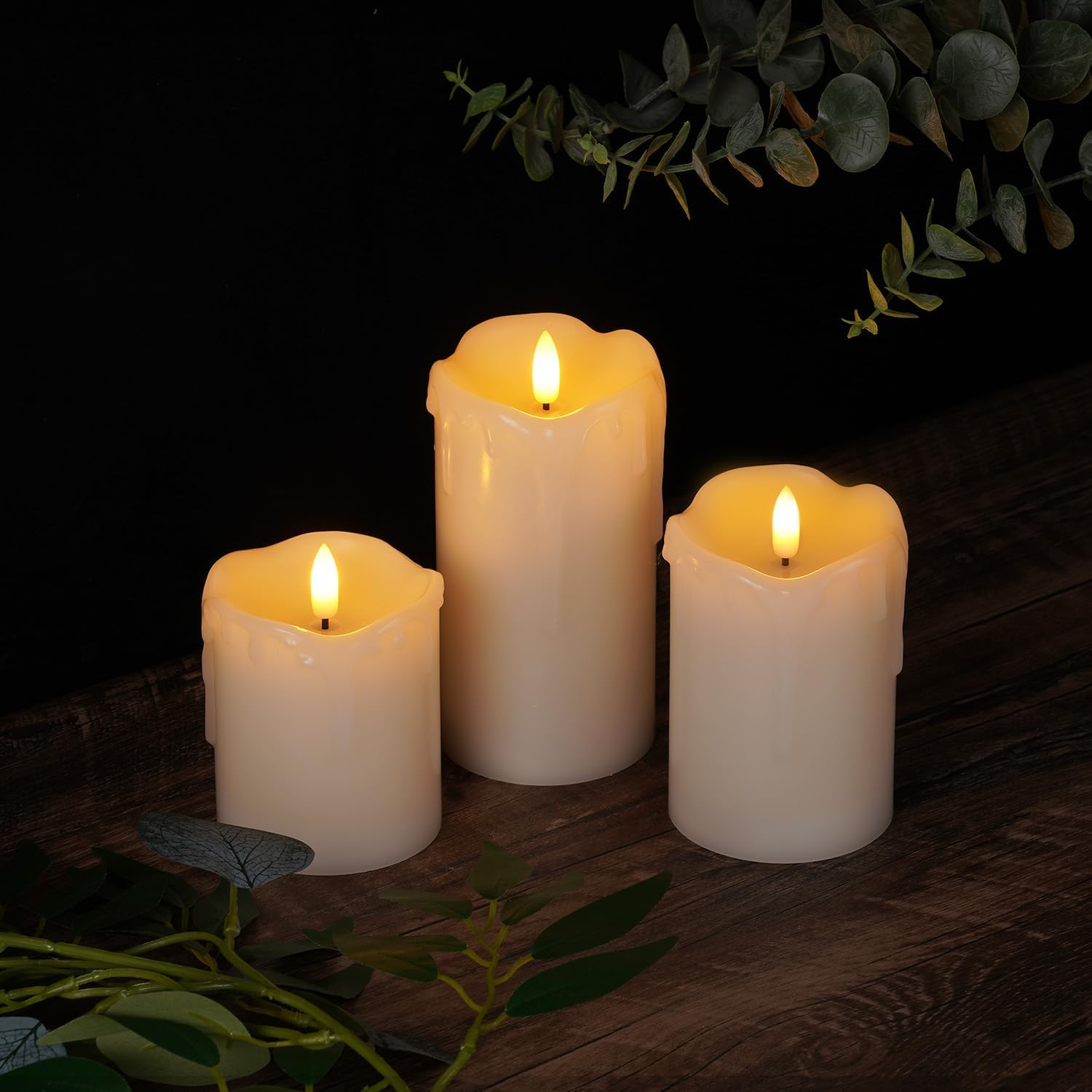 - Package Include: This Homemory Candle Set include 3 x dripping wax flameless candles(D3"x H4"5"6"), 1x remote control, 1x user manual. Each candle is powered by 2 AA batteries(Long last for 500+ hours with high-grade batteries). All these fake candles have been tested strictly by Homemory.