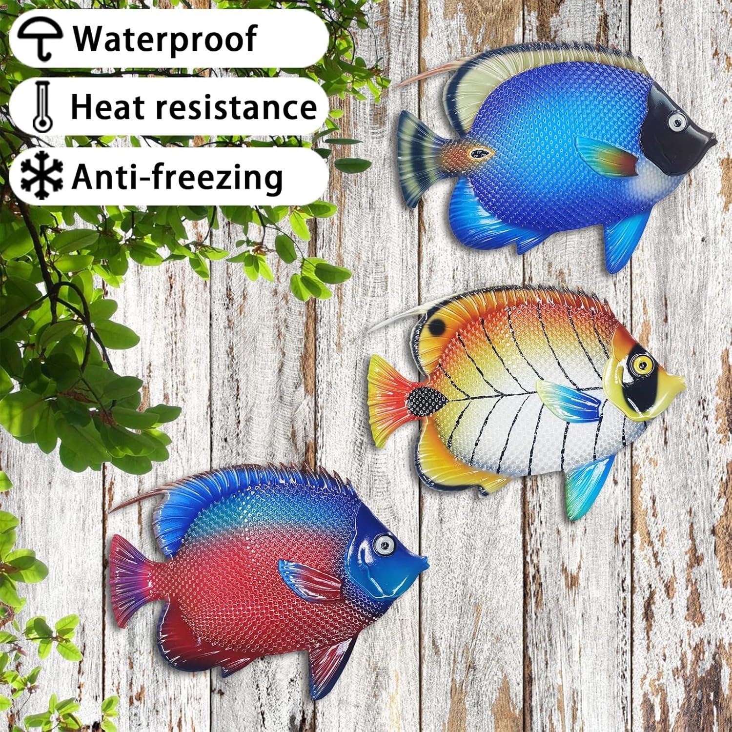 - Product Details - You will get 3 piece fish decoration - Measures 14 x 10 inches. The vivid metal wall decor matches is perfect for any decor style and can be displayed in bedroom, living room, office, study, baby room, kitchen, yard, porch, patio, garden and more