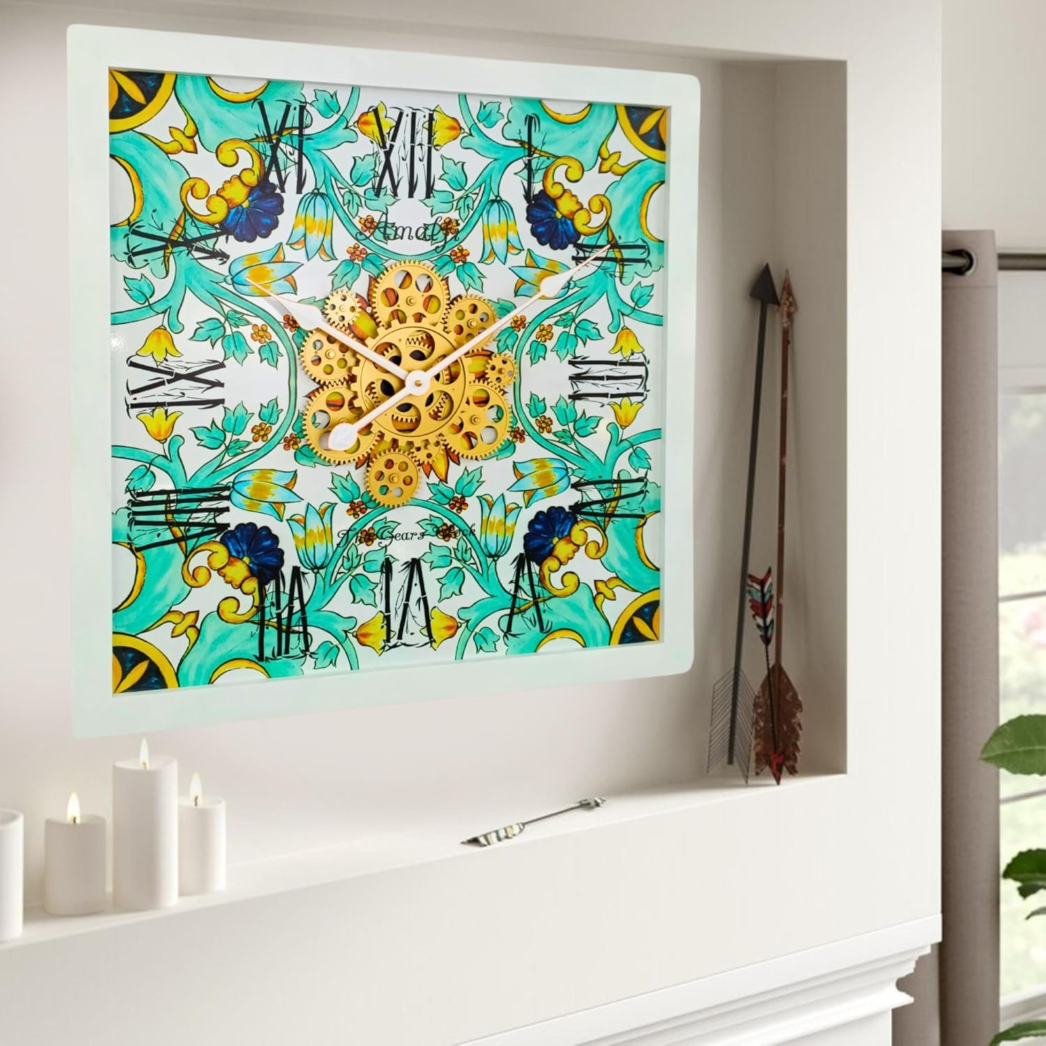 - Wall Clock Italy Collection with Real Moving Gears is an Art Timepiece inspired by the Famous Amalfi coast Tiles in Italy