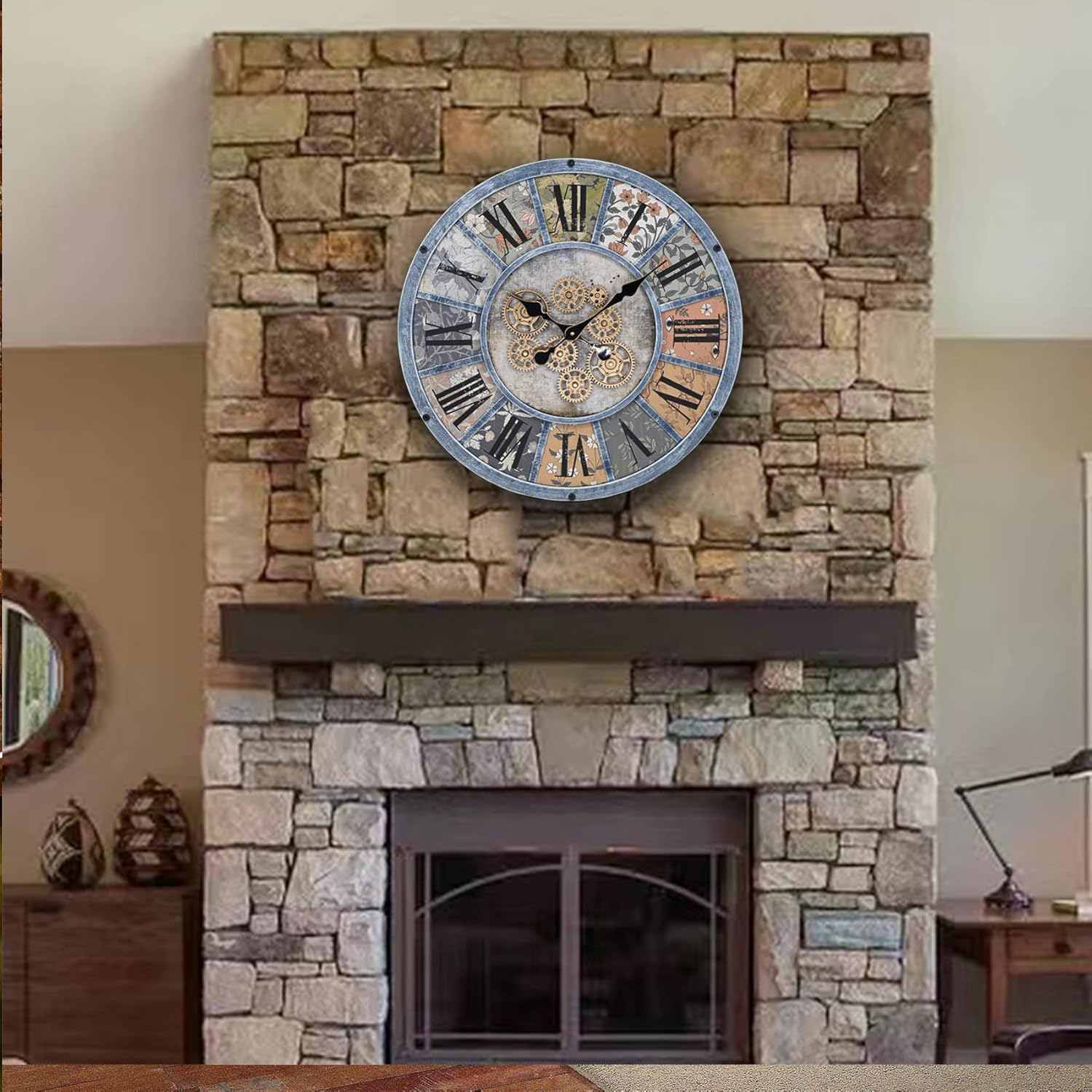- UNIQUE DESIGN | This one-of-a-kind large round wall clock has a solid metal frame and real mechanical moving gears. Unlike other timepieces, this clock stands out with its vintage and industrial design. Its real moving gears add charm and function, giving it a unique and attractive look that exudes rustic and industrial vibes.