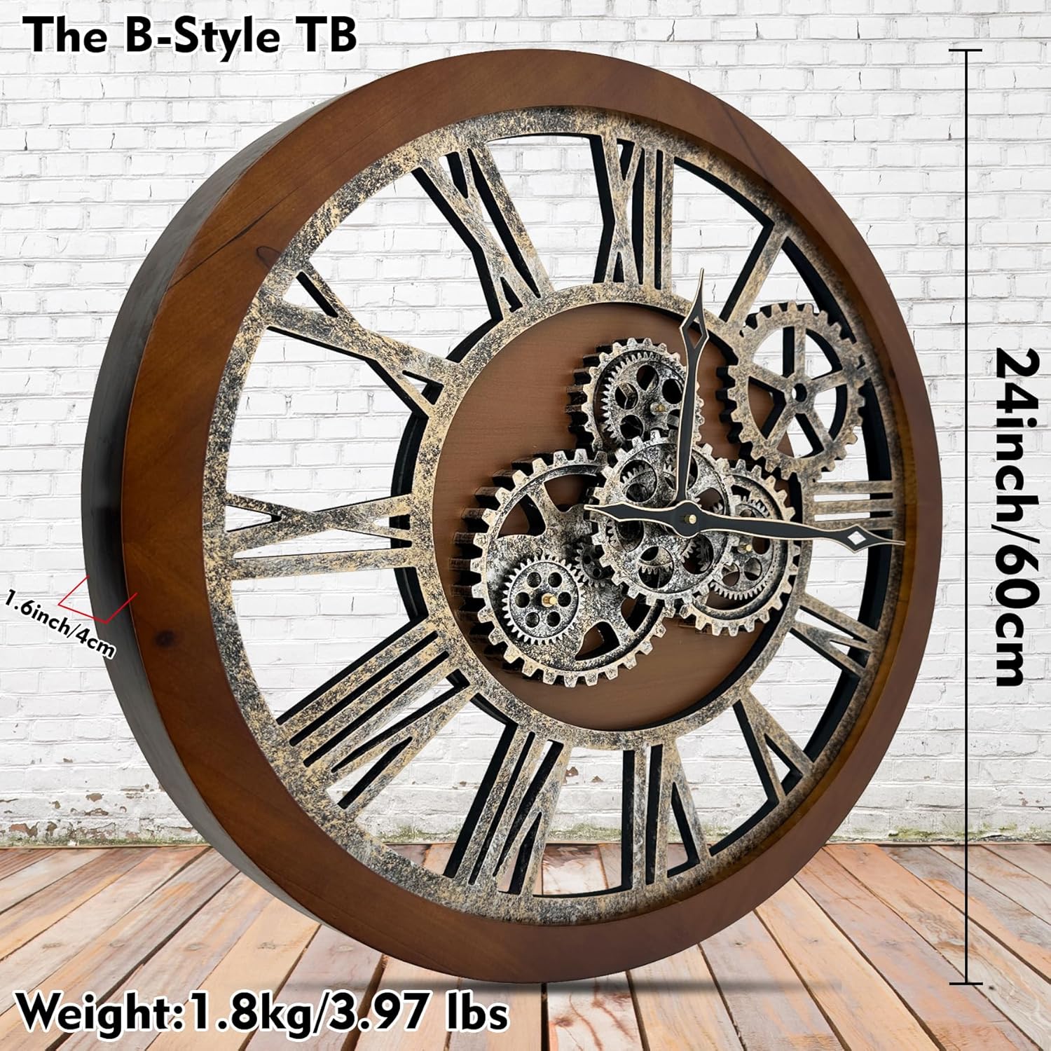 - WIDE APPLICATIONS: Oversized wall clock is not only a timepiece, but also a piece of artwork, greatly adding charm to a room, like living room, farmhouse, fireplace, bedroom or dining room, studio, gallery, loft, cafe, bar, club, etc. Rustic vintage wall clock will become an instant conversational piece for the moving gears and how cool it looks. Also awesome gifts for families or friends