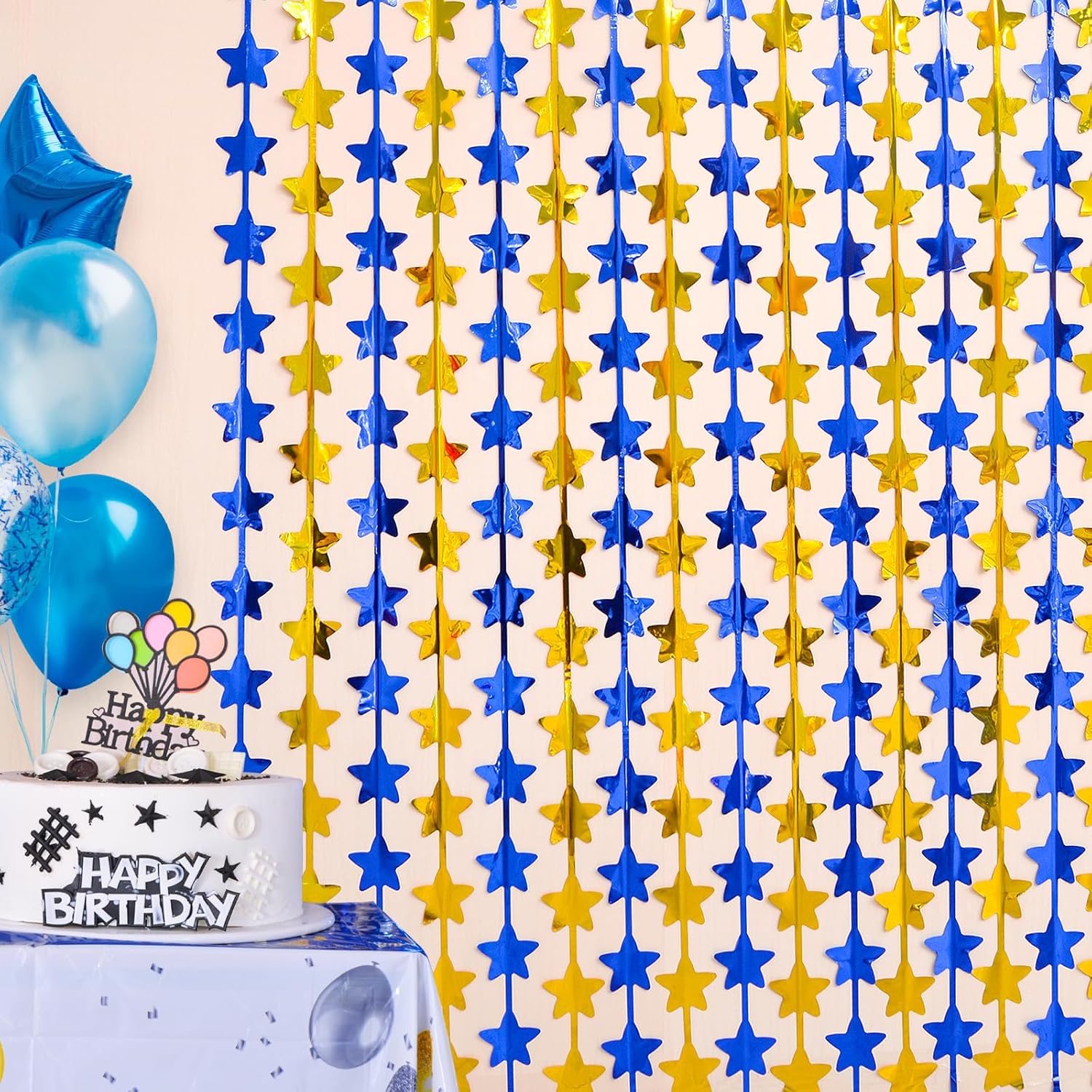 - 💛【 TINSEL MATERIAL 】: These blue and gold star metallic foil fringe curtains are made of tinsel. They are lightweight and durable fringe curtains. These high-quality fringe curtains are tough, unbreakable, and can be used for a long time.