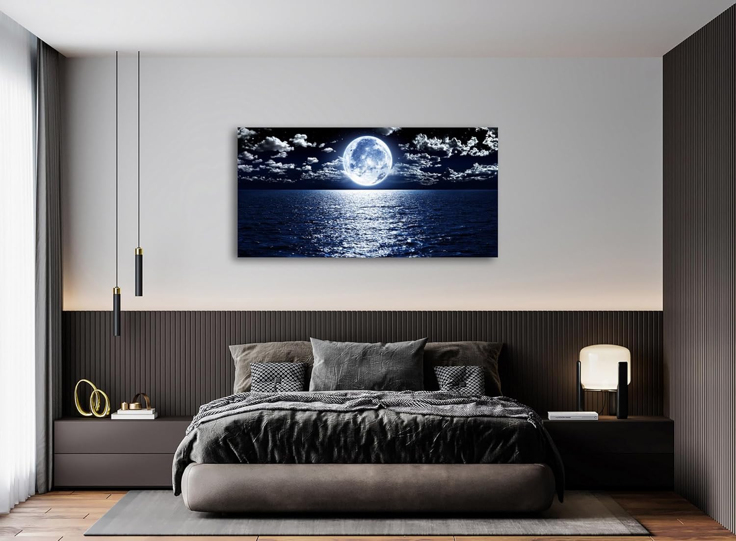 Cao Gen Decor Art S06950 Wall Art Canvas Prints Moon Sea Ocean Landscape 1 Panels Full Moon in Cloud Pictures Paintings Stretched and Framed for Living Room Bedroom Kicthen Office Artwork 20x40inch