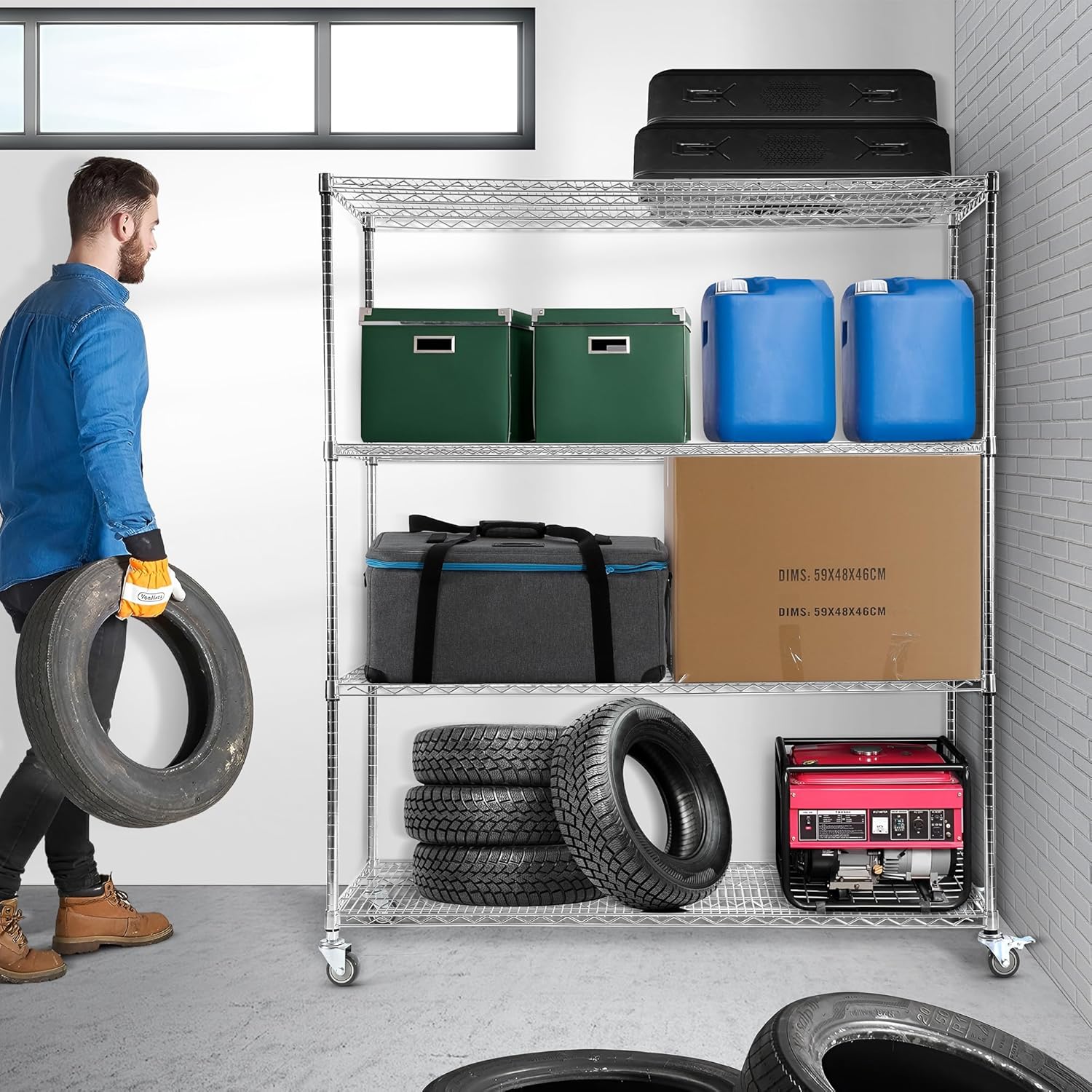 - Heavy Duty Commercial Grade Steel: The metal wire shelving is solid metal construction with a chrome finish that is built to last. Waterproof and moisture-proof, it is very suitable for industrial environments such as workshops, garages, warehouses, etc. Wire rack shelving can hold up to 600 lbs per tier for a total maximum load capacity of 2400 lbs