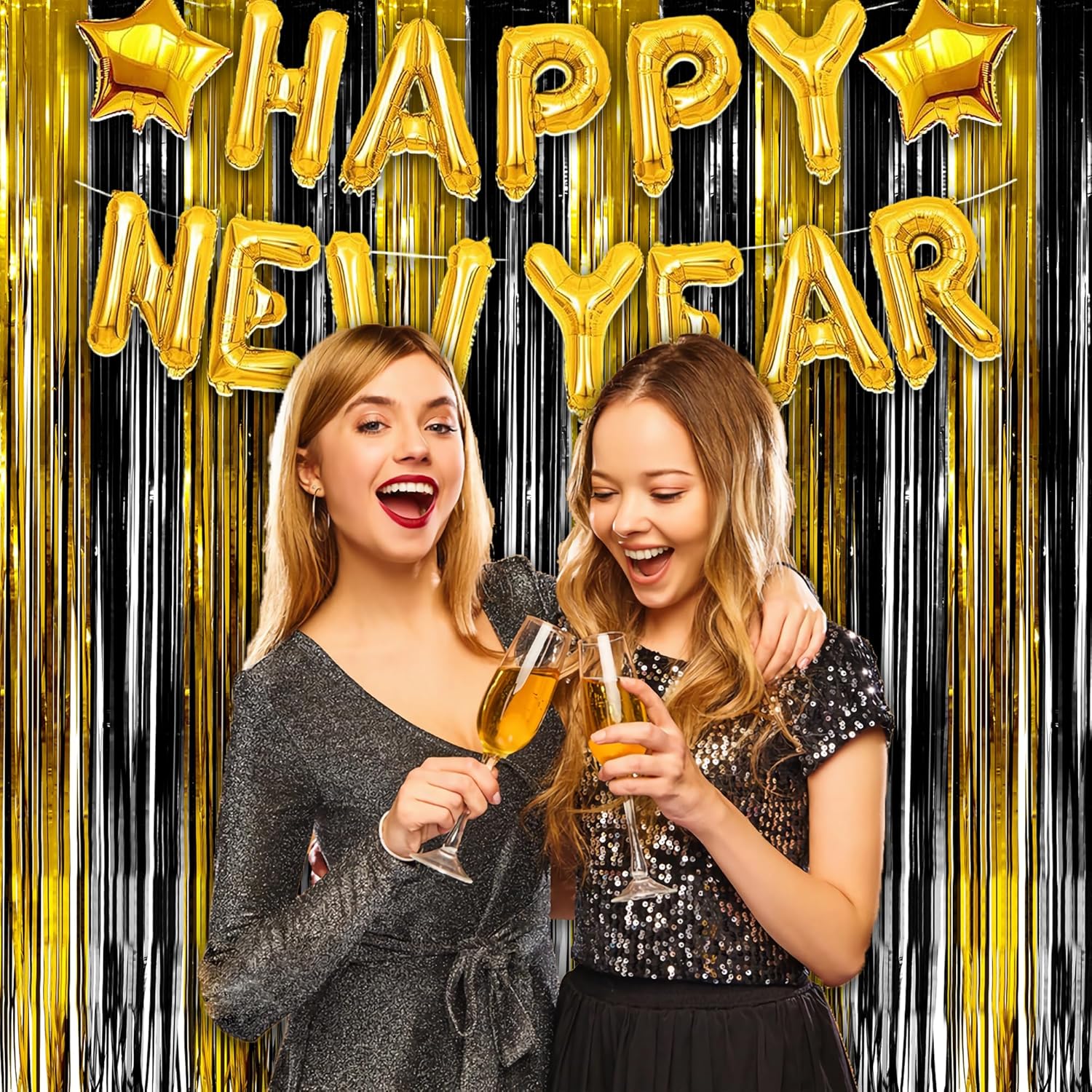 - 2025 NYE Party Streamers backdrop decorations.