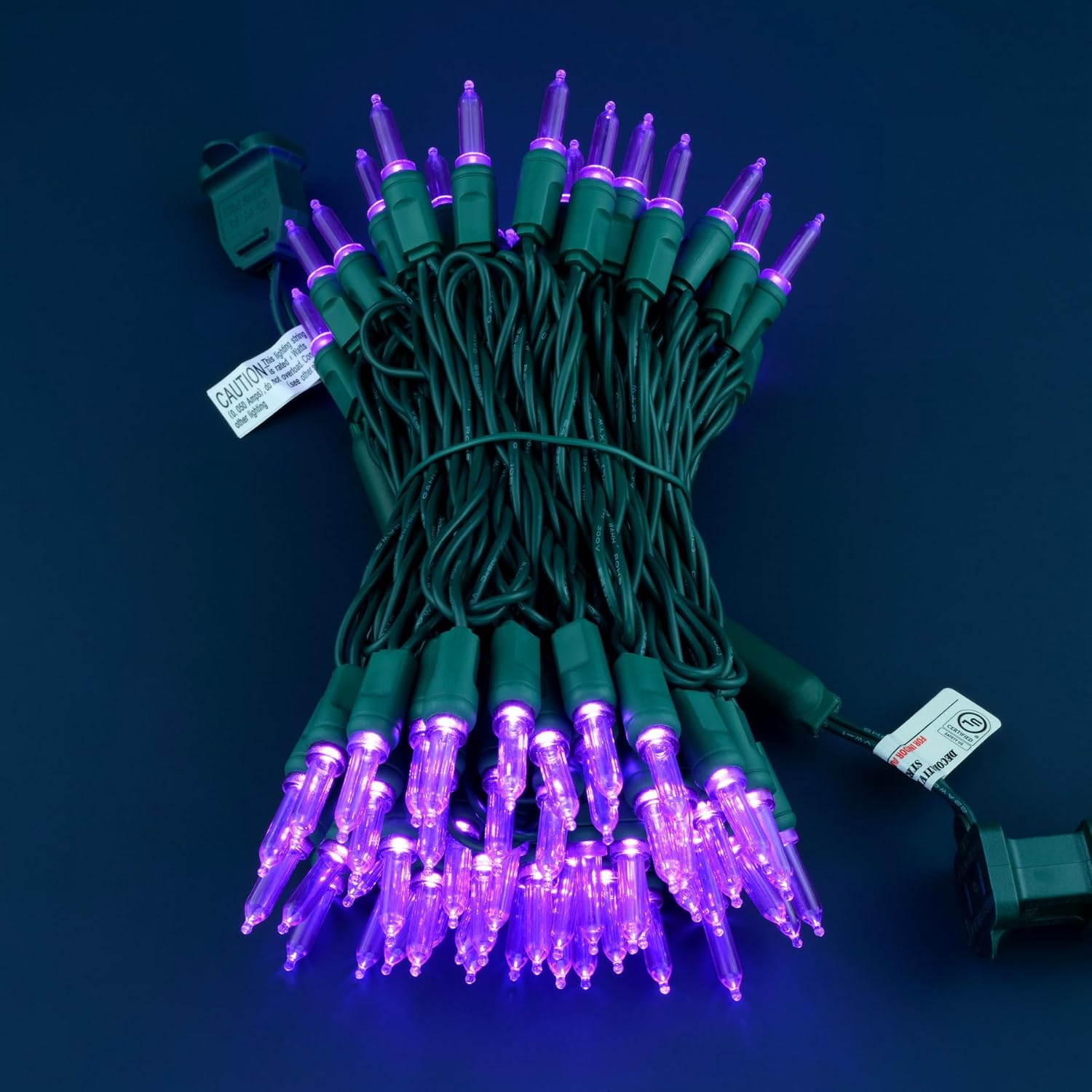 100 Purple One-Piece LED Christmas Lights, 33 ft Green Cord High Waterproof UL Certified T5 Outdoor String Lights (Purple)