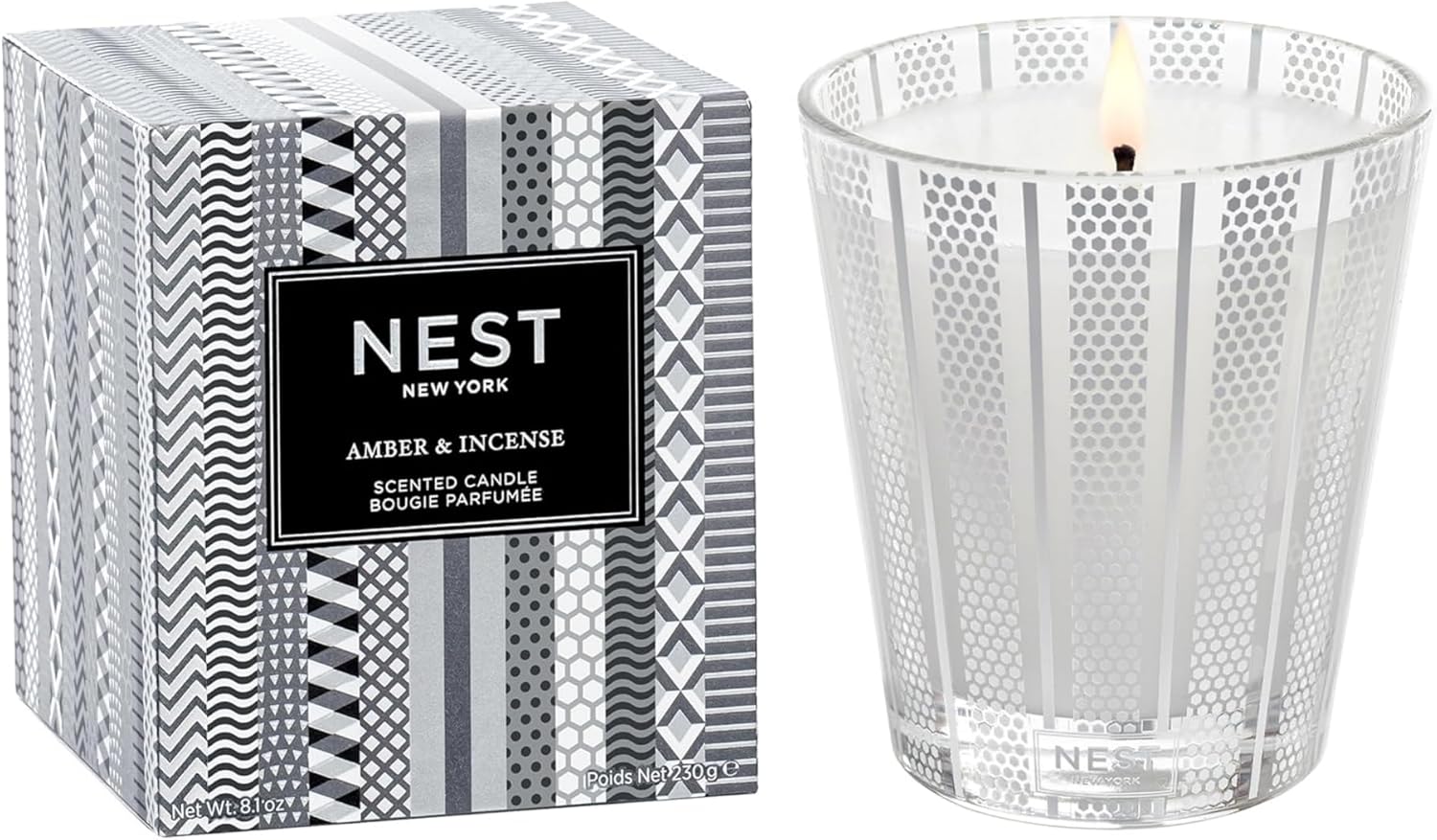 NEST New York Scented Classic Candle, Amber & Incense - 8.1 oz - Up to 60-Hour Burn Time - Reusable Glass Vessel
