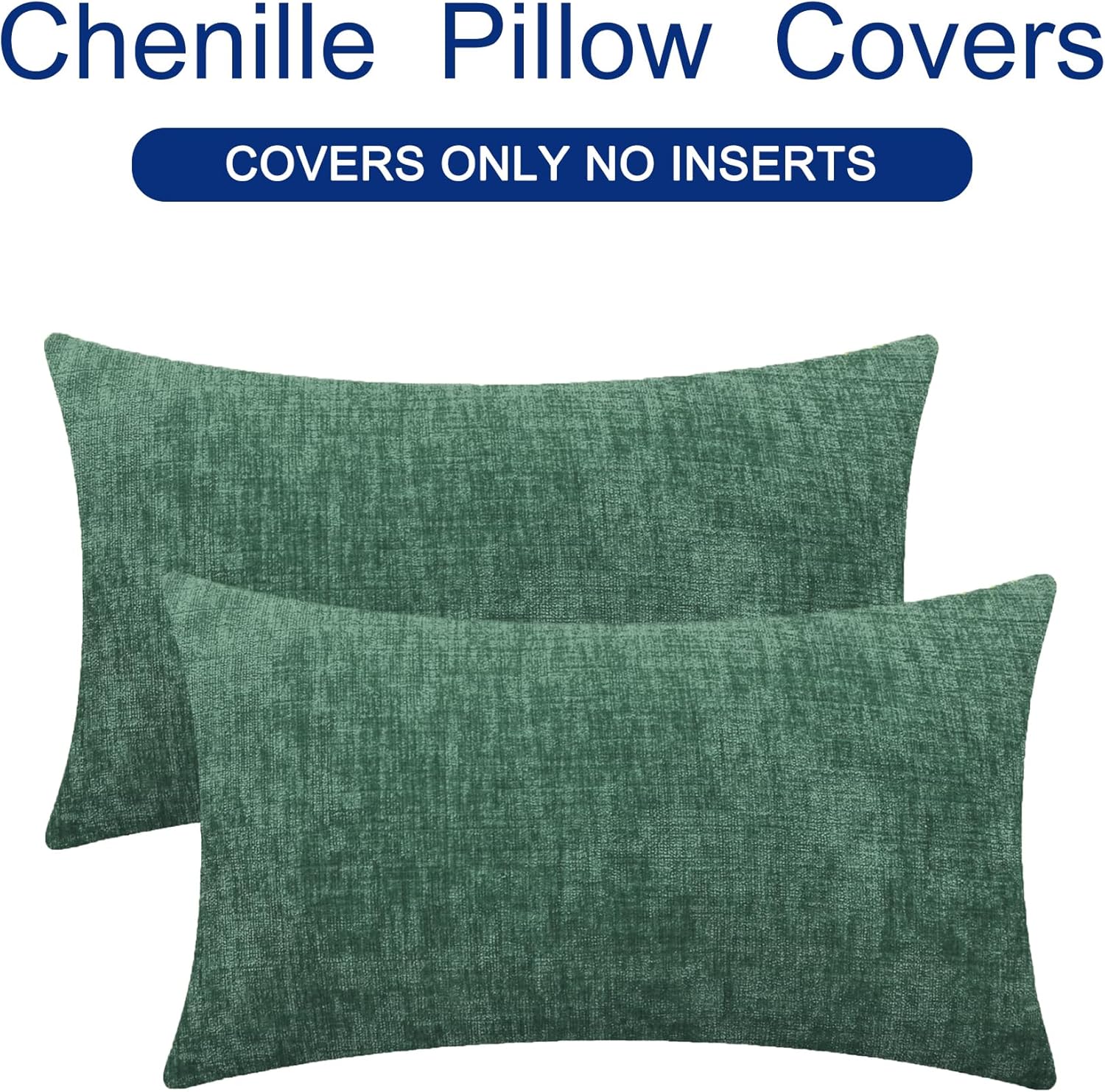 CaliTime Throw Pillow Covers Decorative 12 X 20 Inches Pack of 2 Cozy Chenille Cushion Cases for Couch Sofa Bed Living Room Home Dark Green