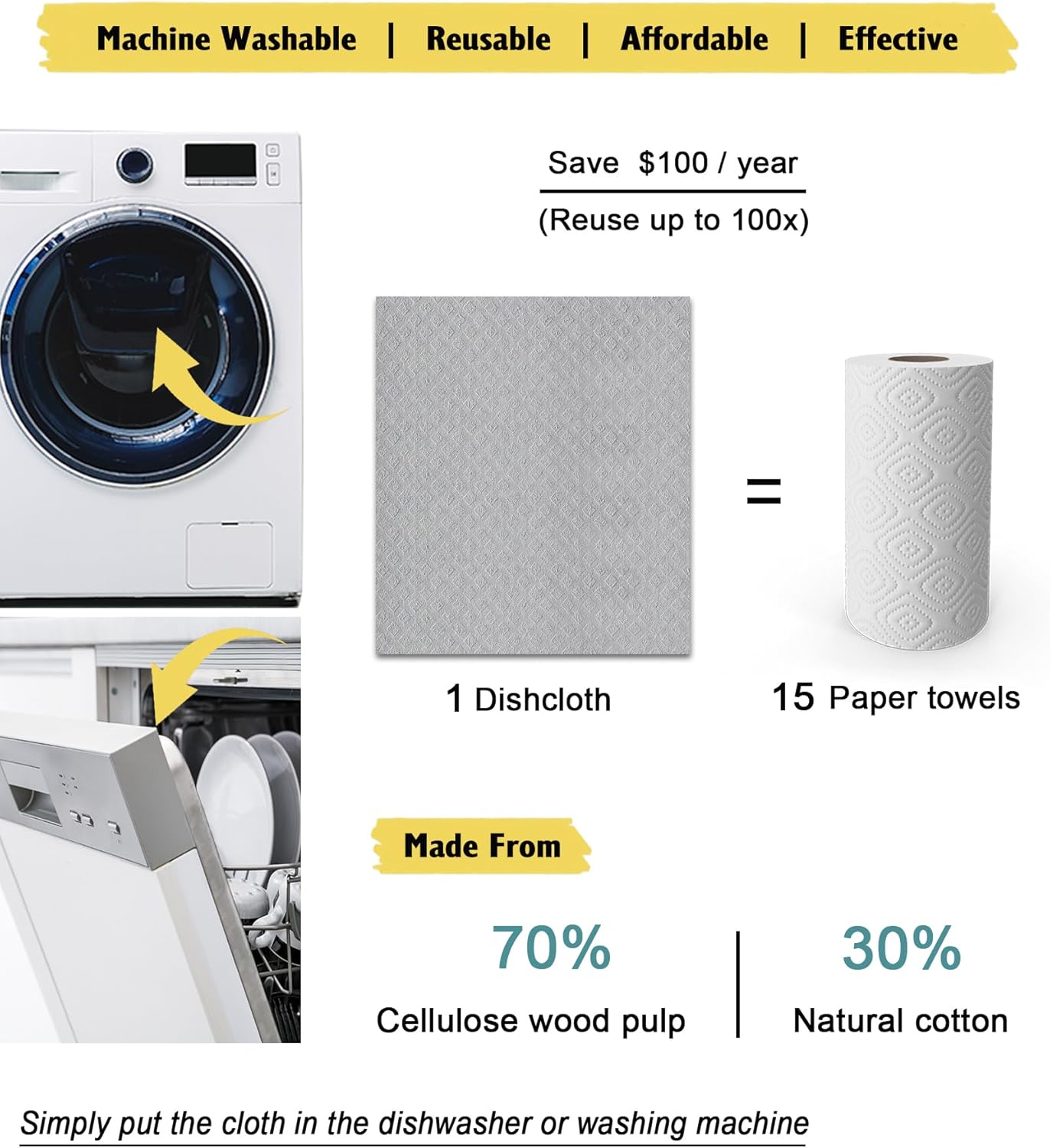 - 【Reusable & Washable】1 cloth = 15 paper towels. Our Swedish sponge cloths can clean up messes time and time again, when you think they need a refresh, just throw them in the washer and they'll come out like new.